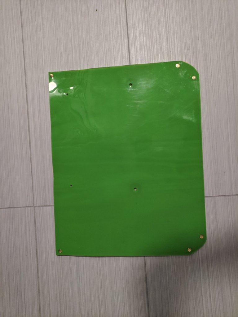 We had 1/4″ plywood cut to size and rounded the corners ourselves with a hand saw. Holes drilled for grommets and for the towel hooks. Below you can see the same shape cut out of crazy carpet. The crazy carpet is to have a smooth, clean surface on the inside of the bag. The holes are offset so the panniers will sit back a bit so your heel doesn’t clip them when pedalling.
