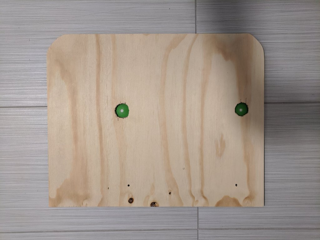 The top holes were for towel hooks. We used machine screws with acorn nuts. Washers were used on all sides of the plywood.