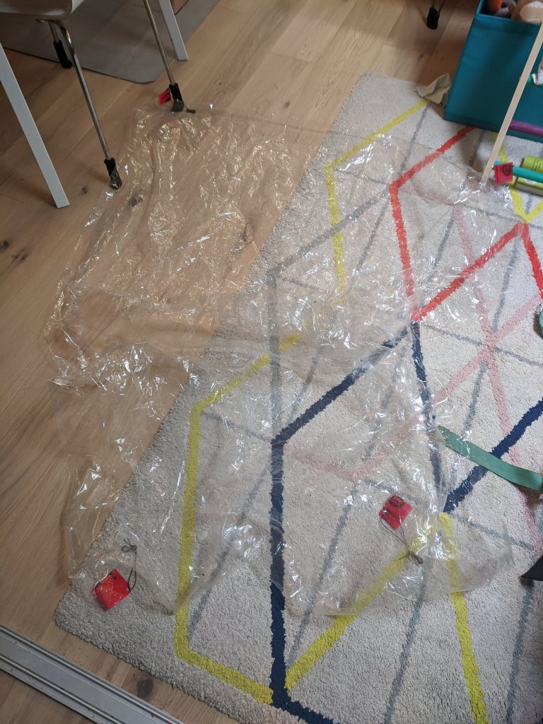- Folding the plastic, and marking with a coloured sharpie is a good way to make the large sheet manageable. Keep an eye on it -the plastic slides and moves around!