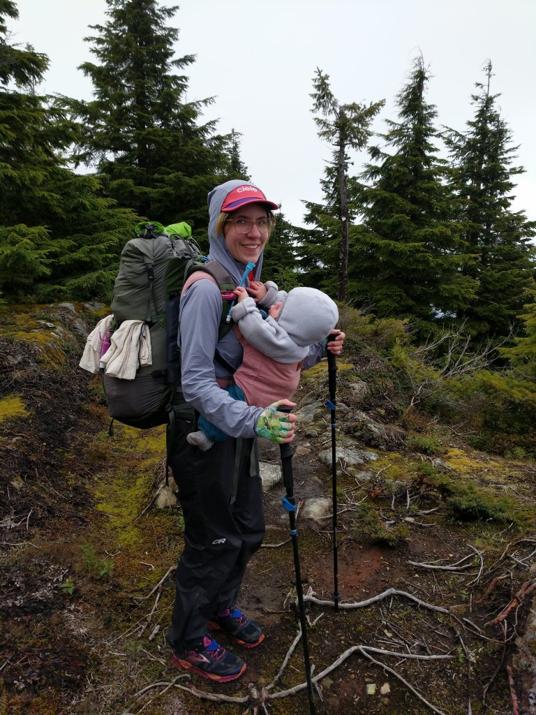 It was still raining off and on, so we took advantage of the cabin to wait until his diapers dried some more. The other hikers were also having a slow morning and Toothless was very popular with them. Eventually we had enough dry diapers and we finally got on the trail around 12pm – probably one of our latest starts ever!