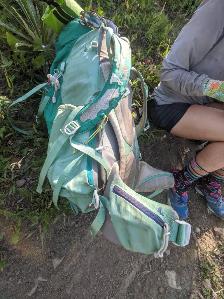 The Gregory pack was her first backpacking pack and fits very well. We hiked the JMT with it, but it’s difficult to pack which makes it inefficient at carrying gear. We like to stuff our packs and avoid pockets but this pack has a lot of compartments.