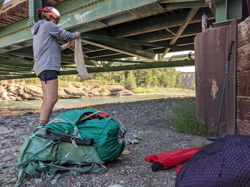 We grabbed water at the river under the bridge. This was the most peaceful part of the day.