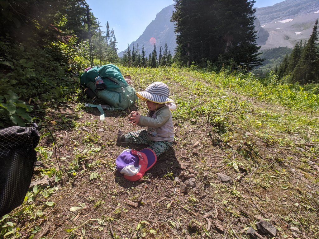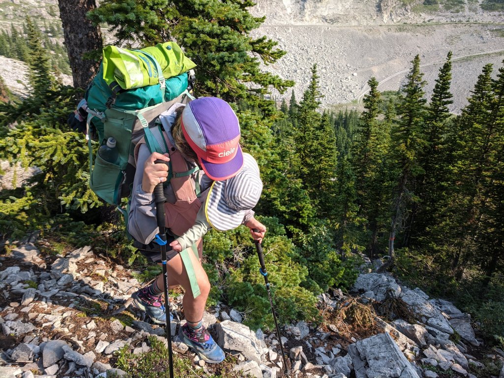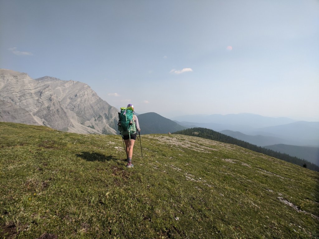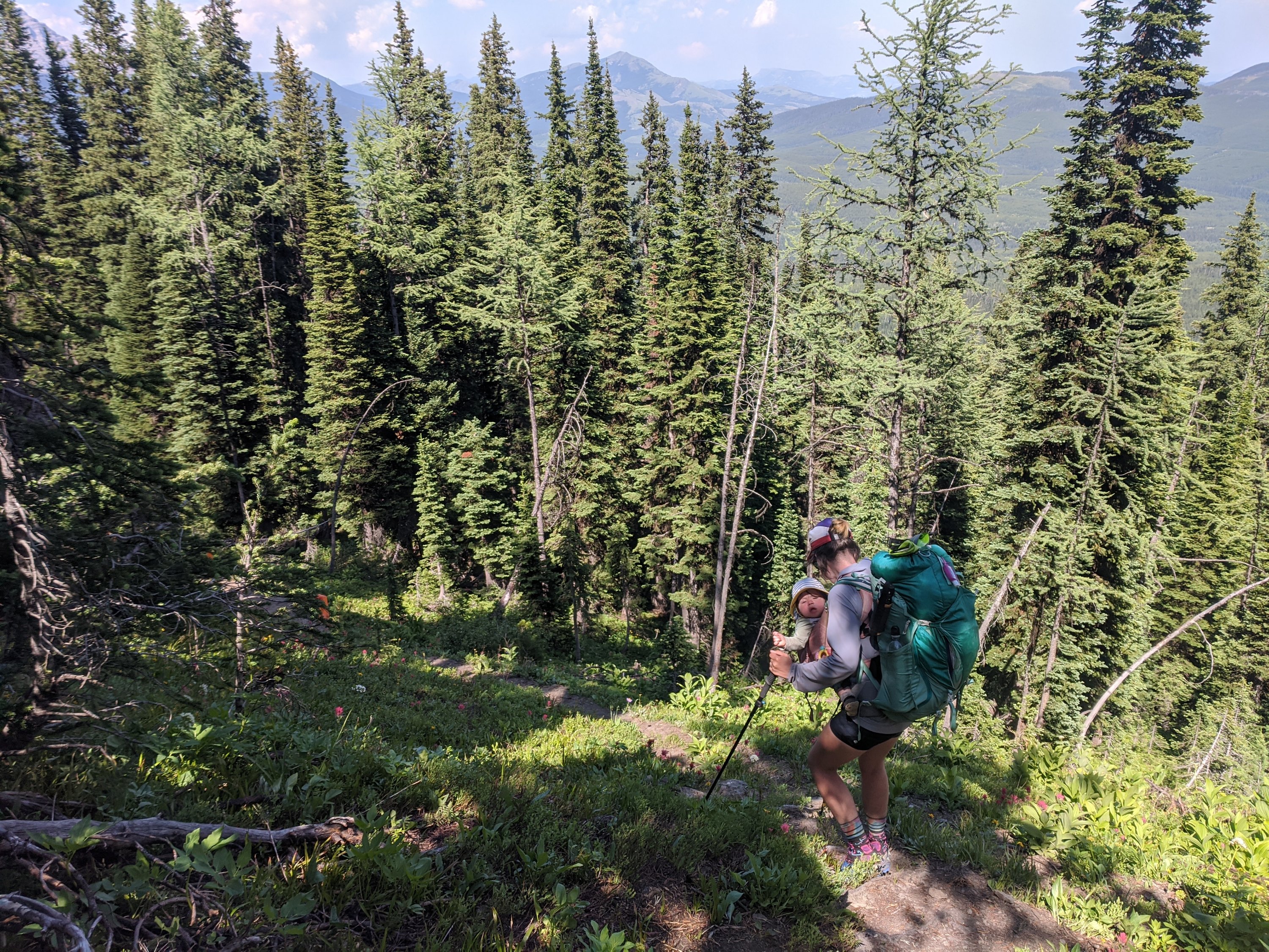 The hike up Racehorse Shoulder was still tough and steep but Natasha knocked it out like a badass. We stopped at the top of the shoulder to give Toothless a wiggle break and change his diaper. The views from the shoulder were unfortunately blocked by smoke in the distance, but still a bit breathtaking (not literally; the smoke wasn’t that bad).