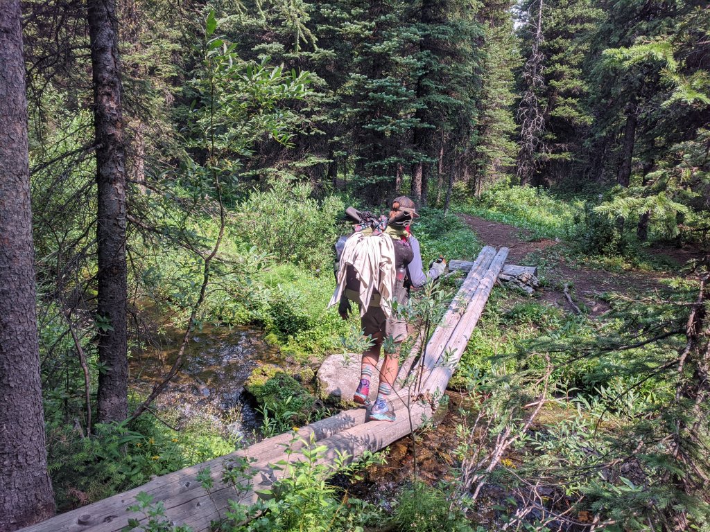 Natasha started by carrying Toothless. Last night we discussed a stretch goal of hiking to Lost Creek (almost 26 km away) to help push our itinerary along and spend more time at Peter Lougheed at our campsite and shorter days road walking. So we had a lofty goal!