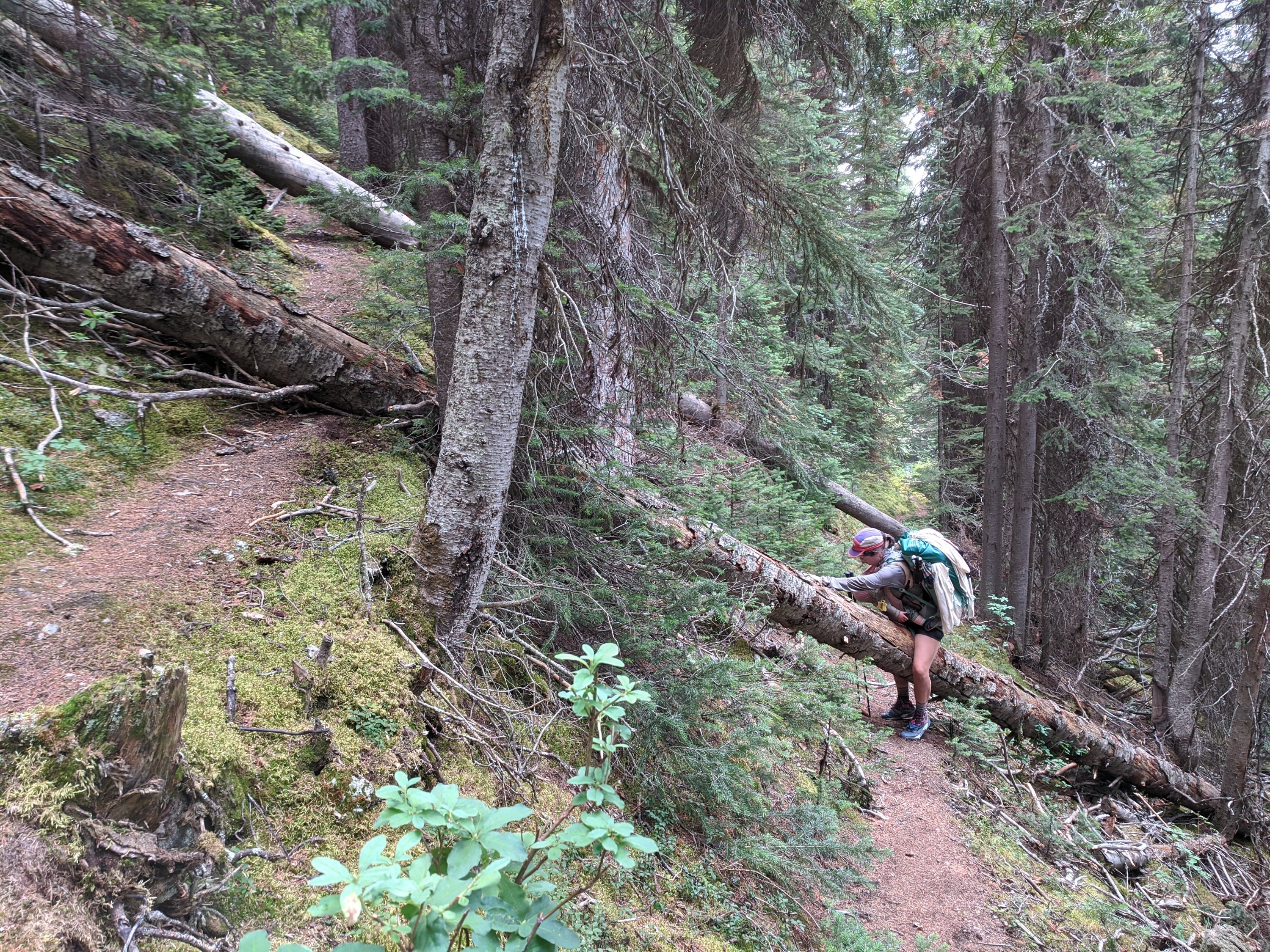 The afternoon was quiet as we hiked over Goodsir Pass and into Yoho. The avalanche debris from 2018 was totally gone and only a handful of downed trees left.