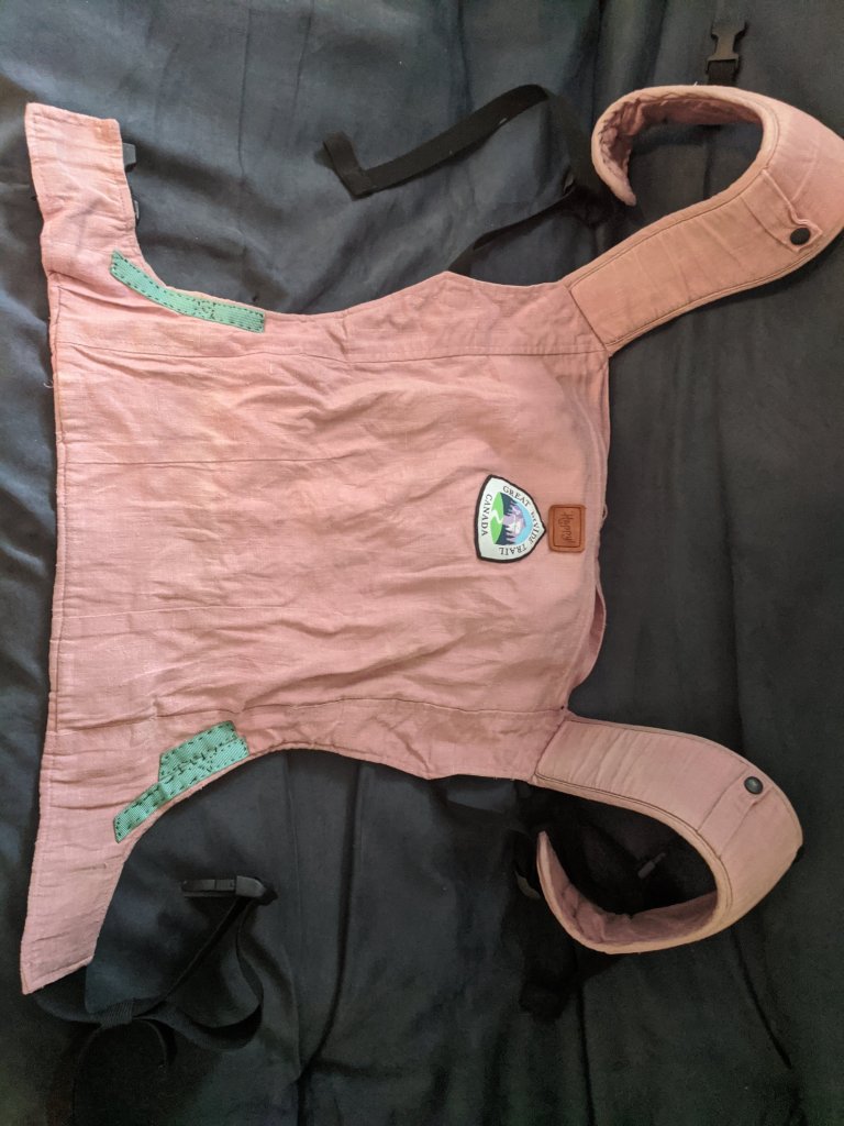 My pack hip belt wears into the baby carrier. We have repaired the carrier (thankfully Natasha needed to cut straps off her pack so I could use those). I also should probably wear K tape on my hips here because my waist gets pinched between the carrier and pack hip belt.