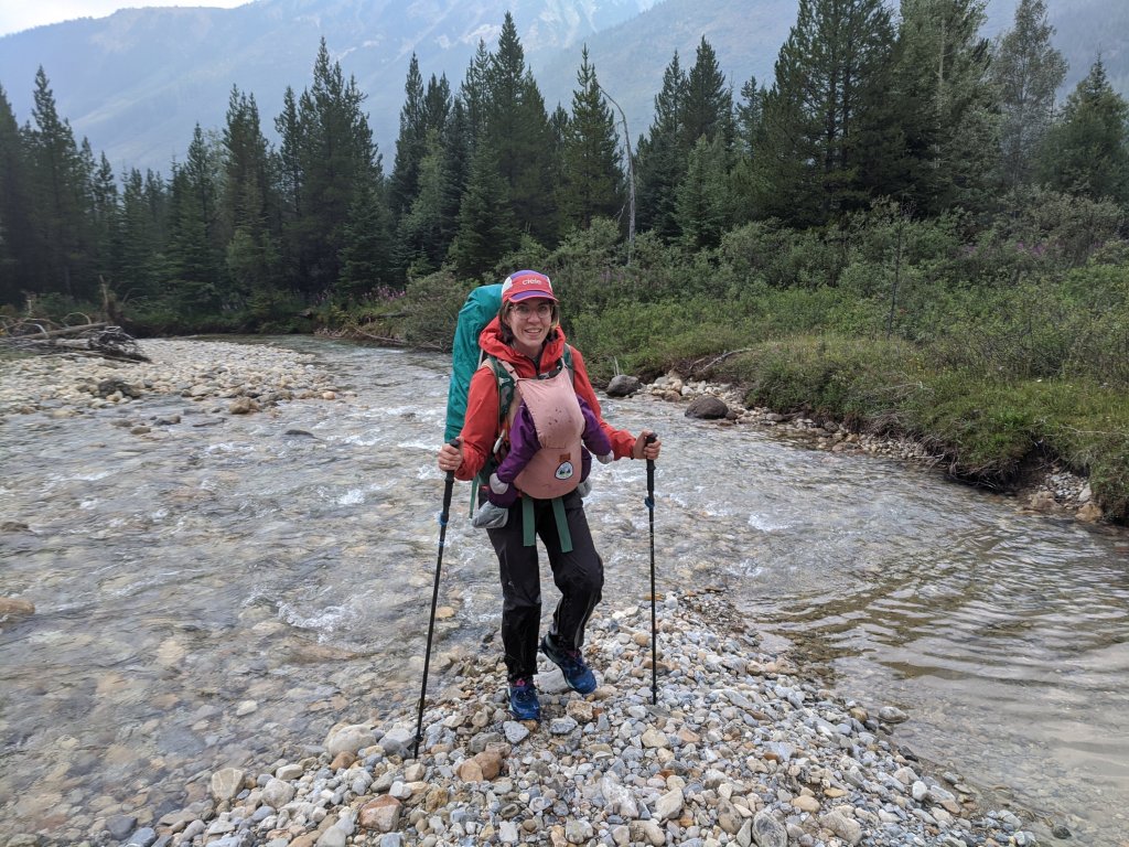 We reached the “worst” section which happens to coincide with the “trail” getting close to the Amiskwi, and knowing what lay ahead, we opted to hop over to walk directly in the river rather than trying to stay on the trail. Getting onto the river instantly felt like such a relief and like I could finally breathe again. We had to cross back and forth a few times, but it was easygoing and it’s much more relaxing to be able to see where you are going. When we reached the ford point, the other hikers were taking a break just on the other side and looked surprised to see us wandering up the river.