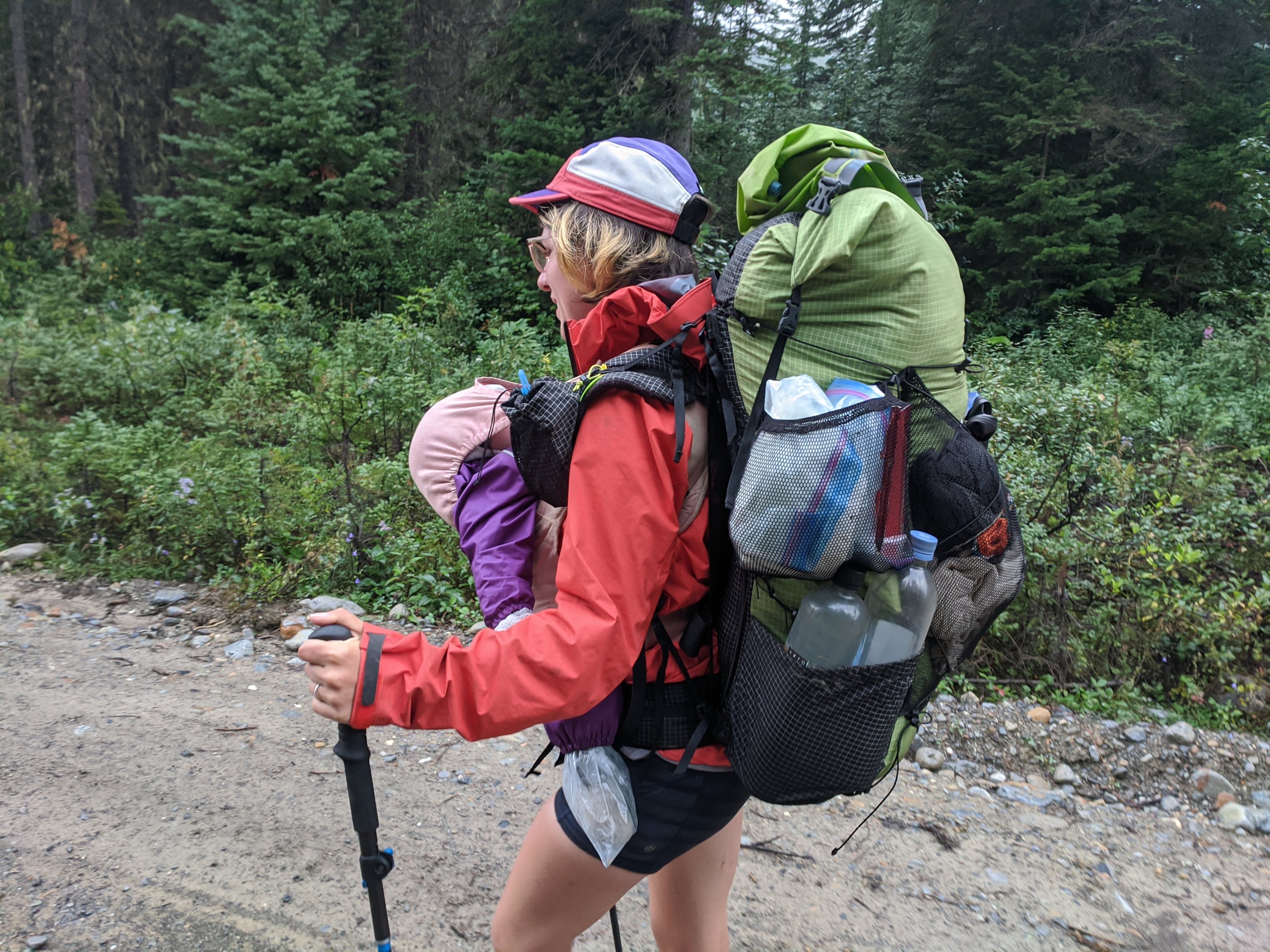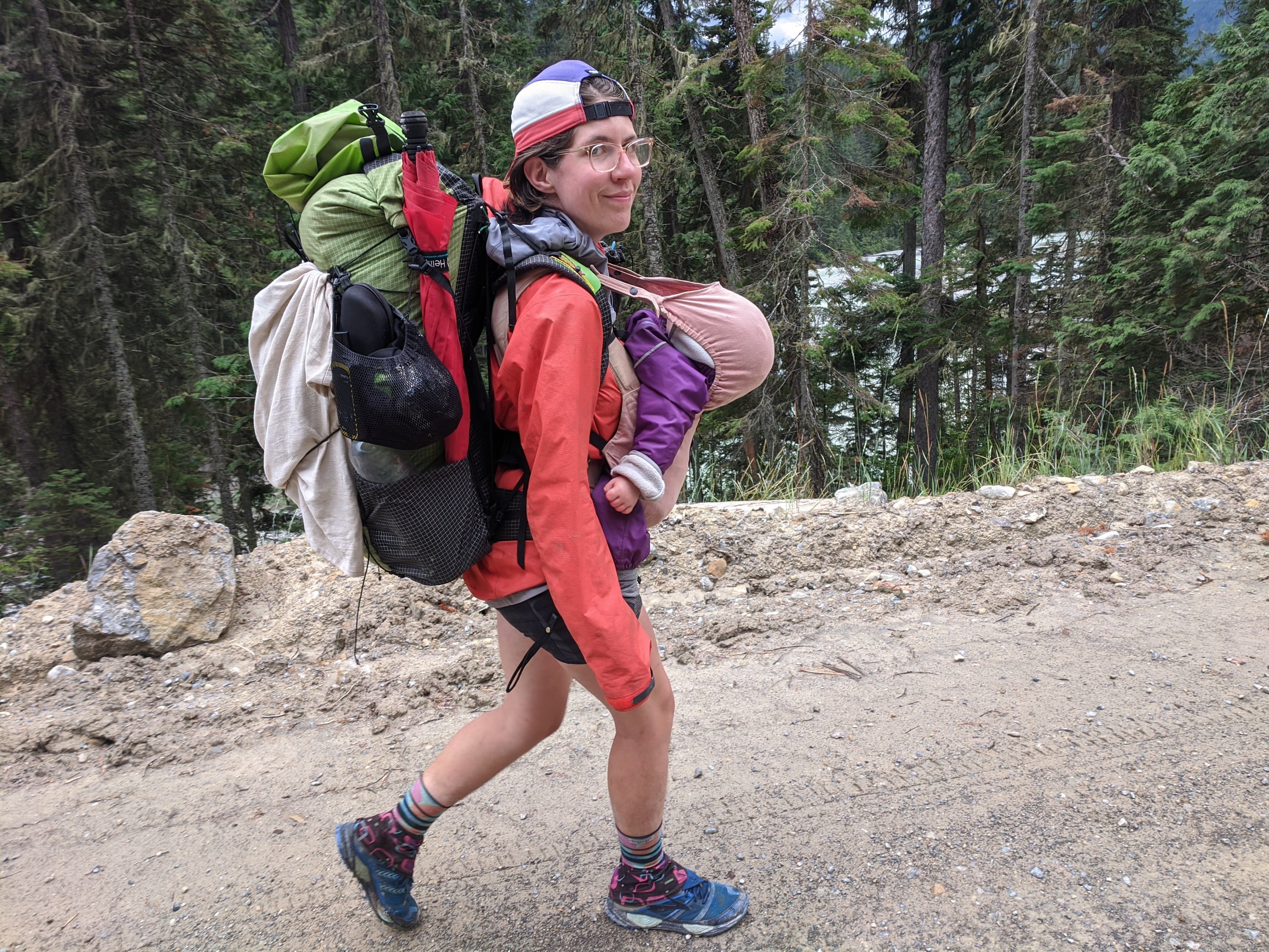 We packed up quick and started walking. Natasha took my pack with all the food and Toothless and I took Natasha’s pack. This is the importance of using the front carrier and using packs that can be worn by either of us in a pinch.