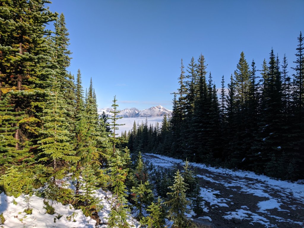 After Edith Lake we opt to take the Bighorn Alley trail directly into town like we did in 2018. After crossing the river, it takes you alongside the train tracks just uphill of the highway which again offers very pretty views of those snow-covered peaks. Kyle’s tendons start to bug him again once we hit the last paved section into town, so we swap again and slow the pace a bit.