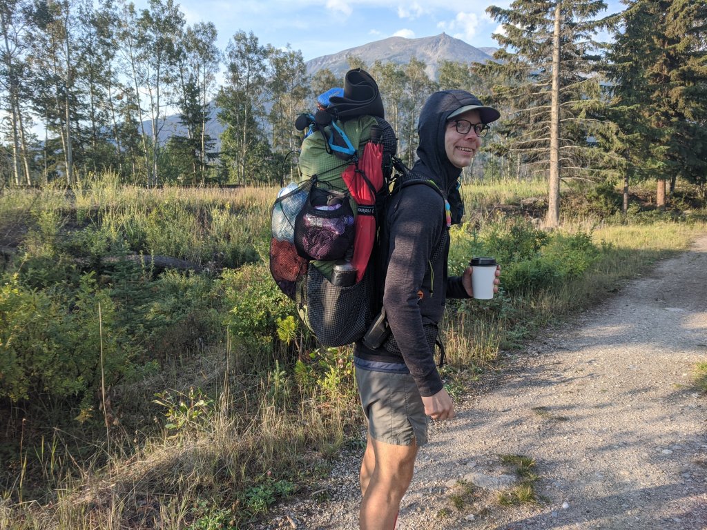 However we stopped off at Cocos for breakfast (to go) as we have every time we have been in Jasper including our 2018 thru. Unfortunately this took a bit of time so I stood outside in the cold for a while as Natasha and Toothless waited inside. Still, it wasn’t bad timing, but felt like a lot of waiting when I just wanted to get moving. During this time we met a couple of other GDT hikers that finished in Jasper and had seen our notes in the trail logbooks. It was nice chatting but a little odd knowing we still had to hike out today and they were done.