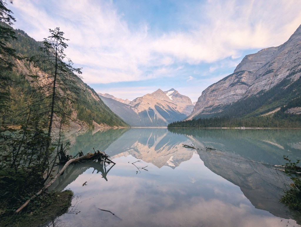 We skipped around the lakeside trail at the end of Kinney Lake on our way in, so opted to follow it on our way out. It offers top-notch views of the lake and Mount Robson. Definitely don’t skip past it!