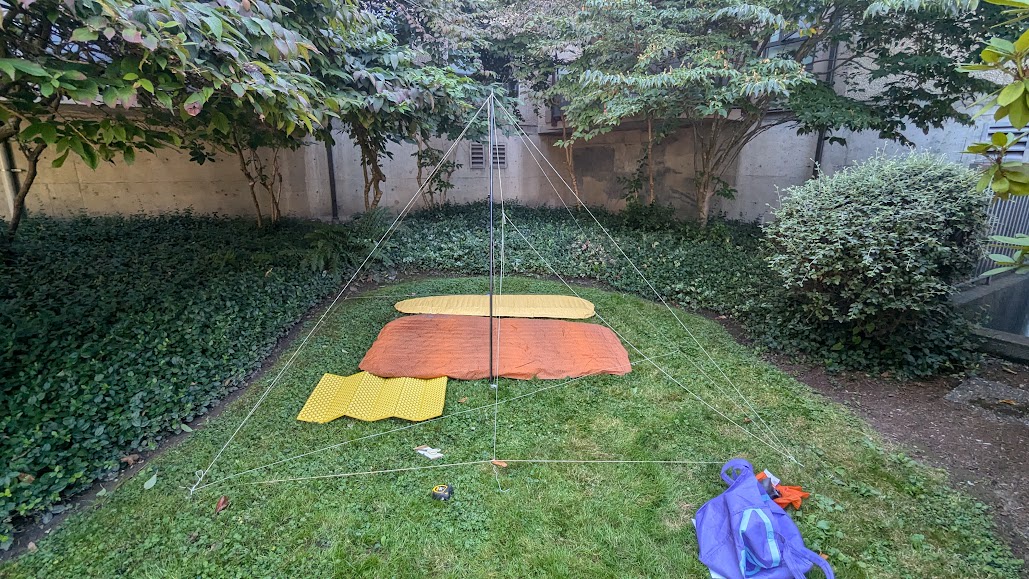 I modeled the 4 person mid options out in CAD and in our apartment building’s common lawn using tarp poles and twine. We laid down, put our sleeping pads down and took a look. This helped me get a feel for how spacious each of the options were, and how large of a footprint they had.