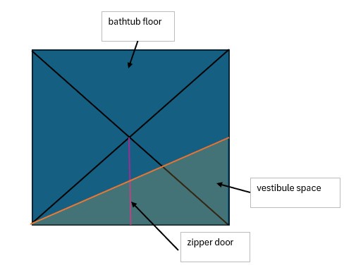 Using a 4 person mid basically gives more floor space since it lacks dedicated inner and vestibules as the Triplex. In order to balance clean/dry space with space for wet or dirty gear, I considered a 4/5 or similar configuration. This was considered in my mock up. If you open only one door to enter or exit the tent in wet weather, you should be able to limit having water get onto the bathtub and sleeping space.