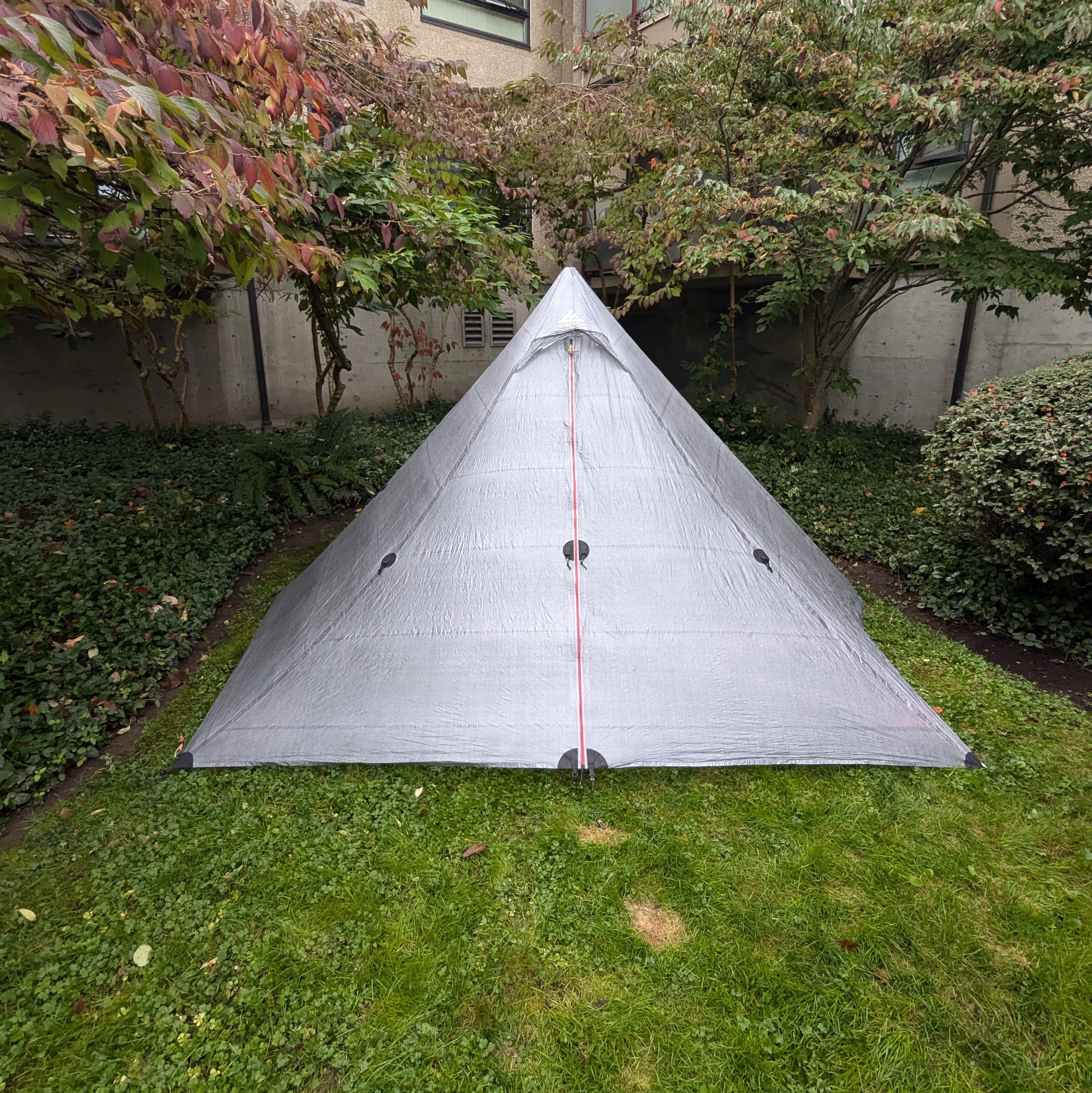 I decided on a LocusGear Khafra DCF-B tent. It’s a 4 person mid on the smaller side that has a very competitive weight. It is made of DCF, has dual peak vents, and has some options for inner.