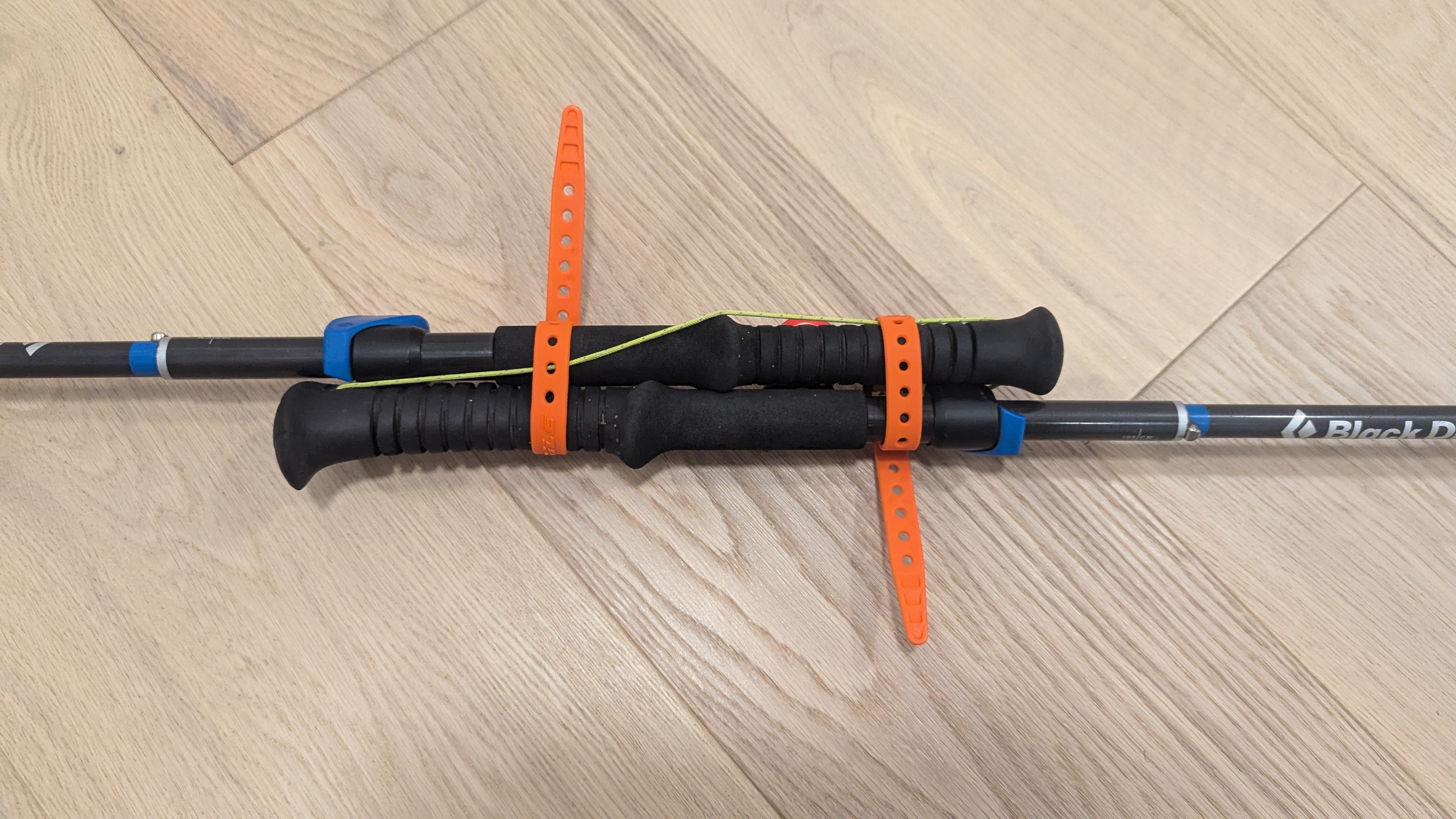 To strap the poles together, I am using a small cord and alien loop to prevent them from sliding along the length. Then I am using nano straps to keep them together.