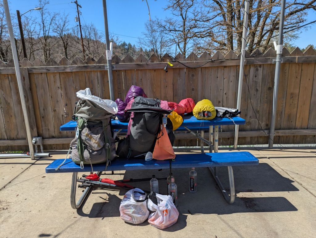 We went back to the Legion then dried and repaired gear. I fixed my shorts. Natasha replaced the zipper slider (and did a damn good job on it. It works now!). We did diaper and clothes laundry. Dealt with trash. Filled out water bottles. Natasha and Toothless got food for the hike while I packed the bags.
