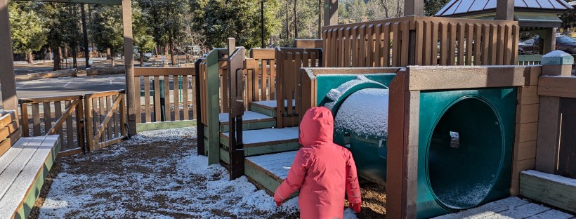 I took Toothless to the playground (which is awesome) while waiting for Natasha to figure out our plan. Lil Flier was napping at the hotel.