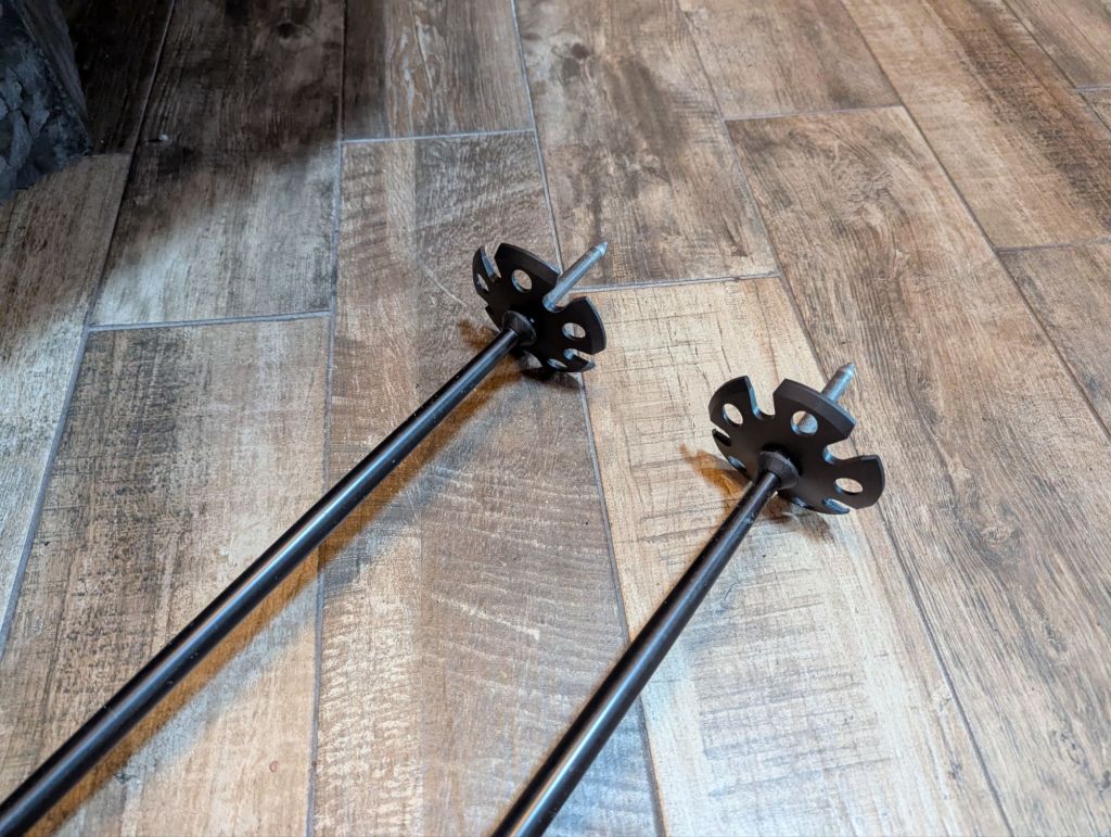 I modified the pole baskets to fit a komperdell style tip. I used the knife to make the right size hole. I made it fit.