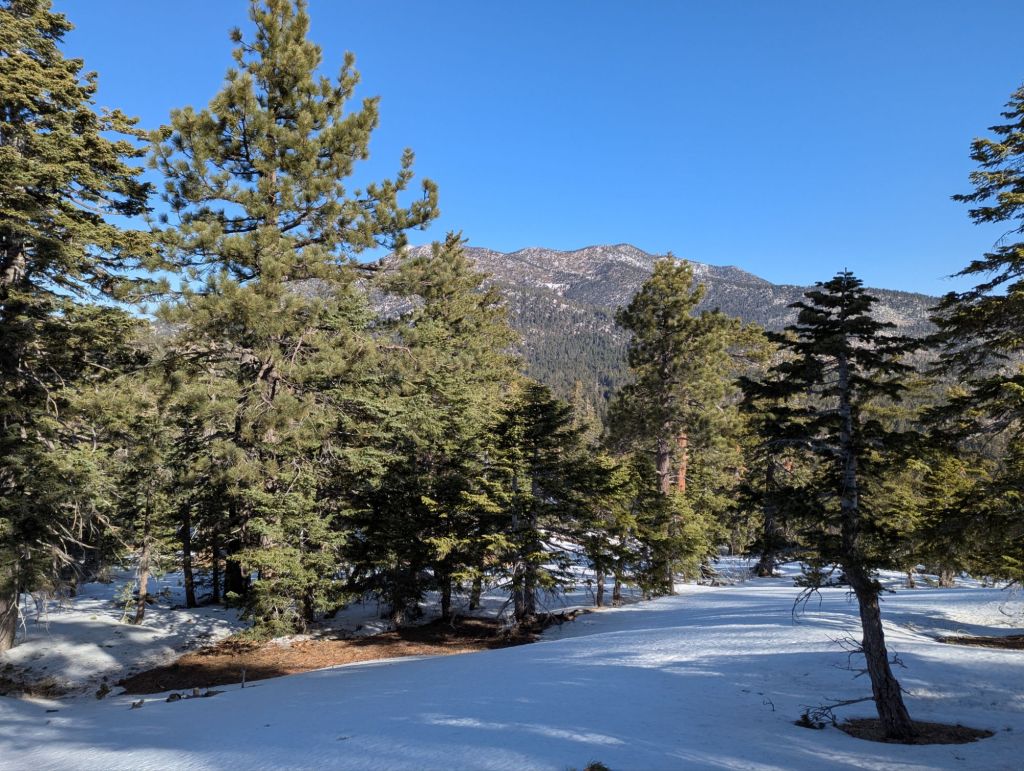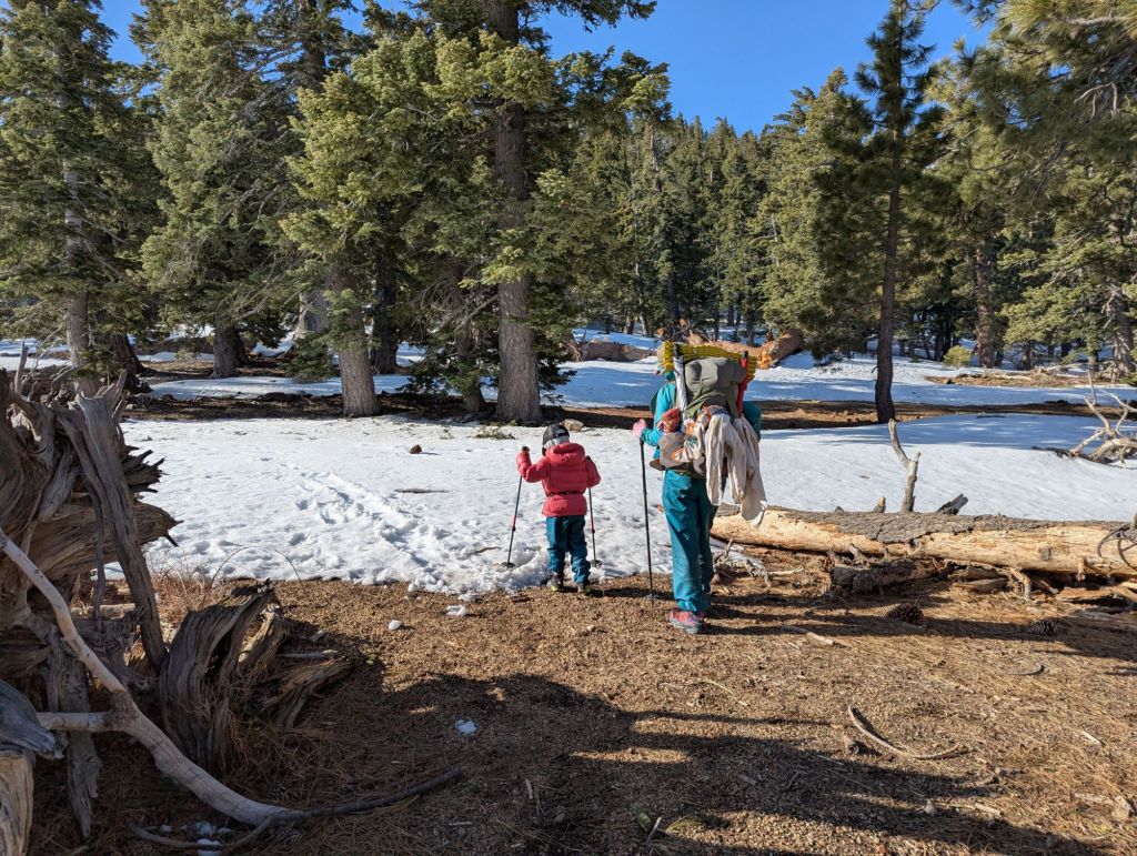 We had an awesome morning. It was beautiful. Toothless played in the snow. We took the low valley alt and it was all easy to walk snow. Very pretty. Very suitable for Toothless to play in. The views today were fantastic. It was a clear day and we could hear birds singing this morning. We saw a number of animal tracks in the snow.