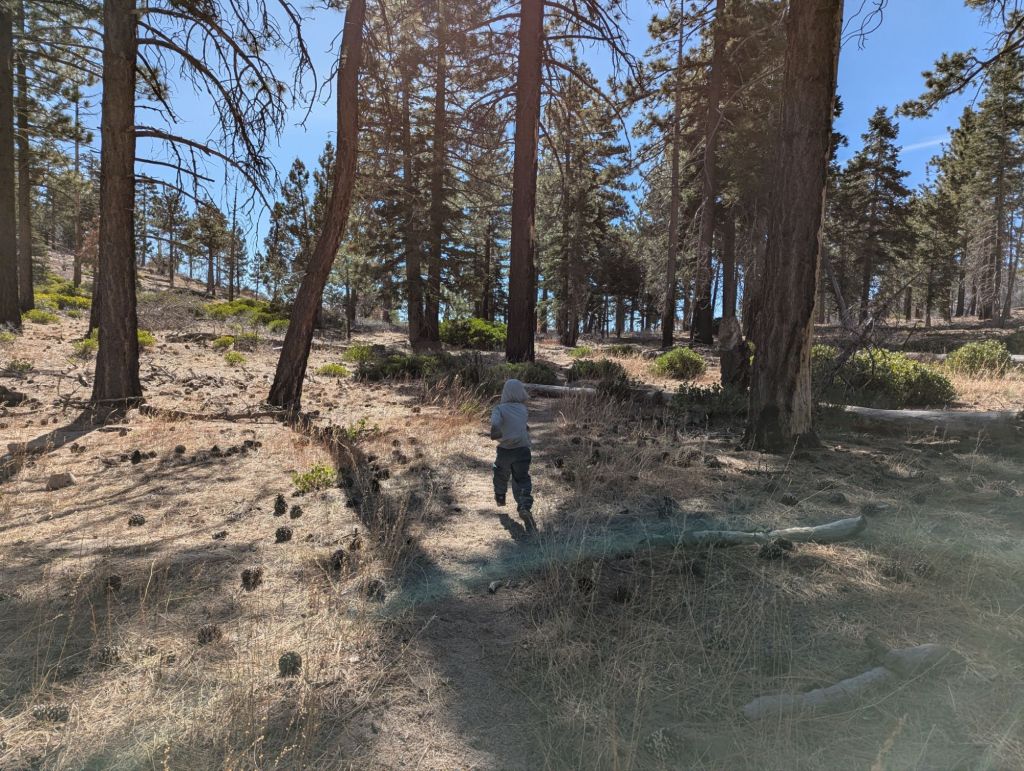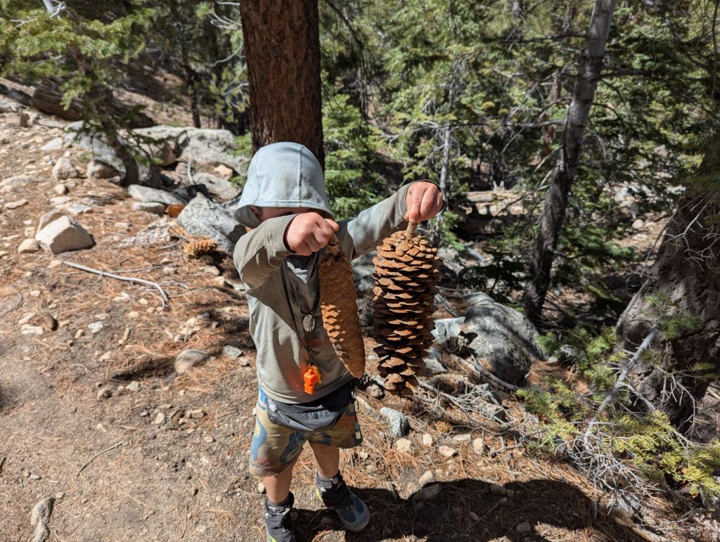 Toothless started out being disregulated and hitting me. I notice this happens sometimes when we talk to another hiker. Not every time but sometimes. Maybe he’s getting overwhelmed. This morning it was a woman right outside our camp asking about the trip. In the morning Toothless just needs to move. The pause and transition shifted him from being happy and playful to hitting me. So we got over that after a half a mile or so and then the morning really took shape.