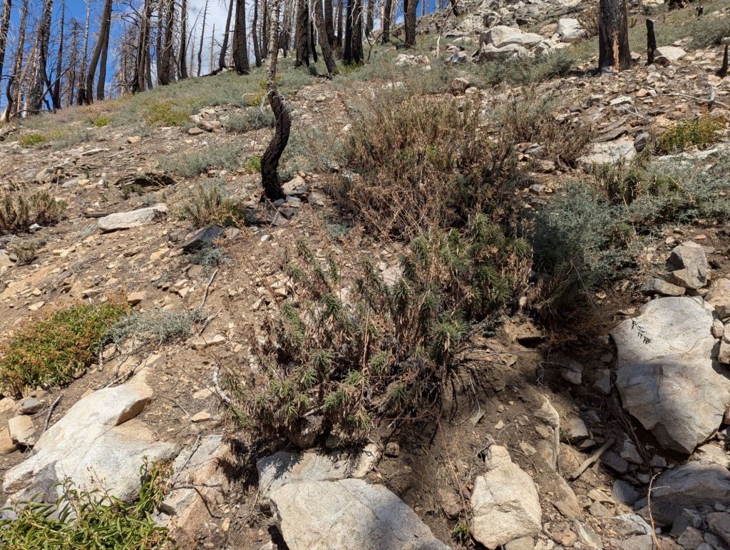 We left and once we got into the burn finally saw some poodle dog. Some people keep reporting poodle dog on trail since Campo but I have not seen any yet. Today we saw a LOT of it. And it looks like the photos online.