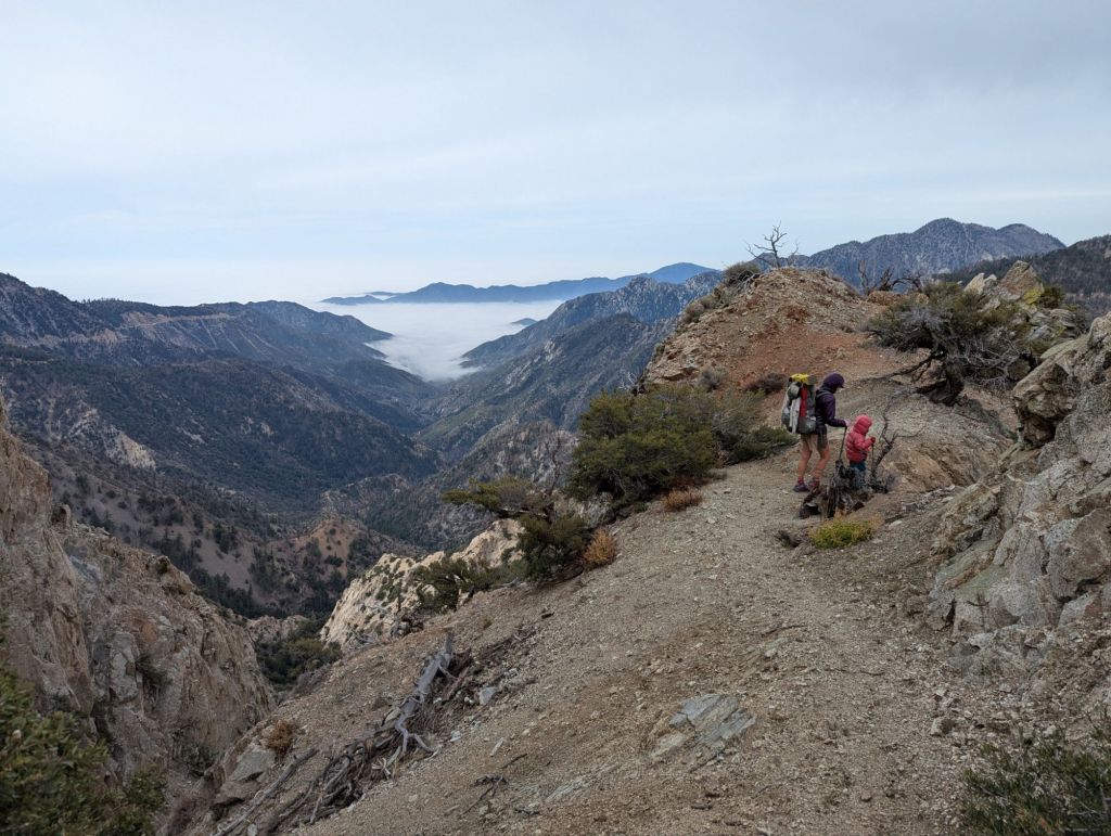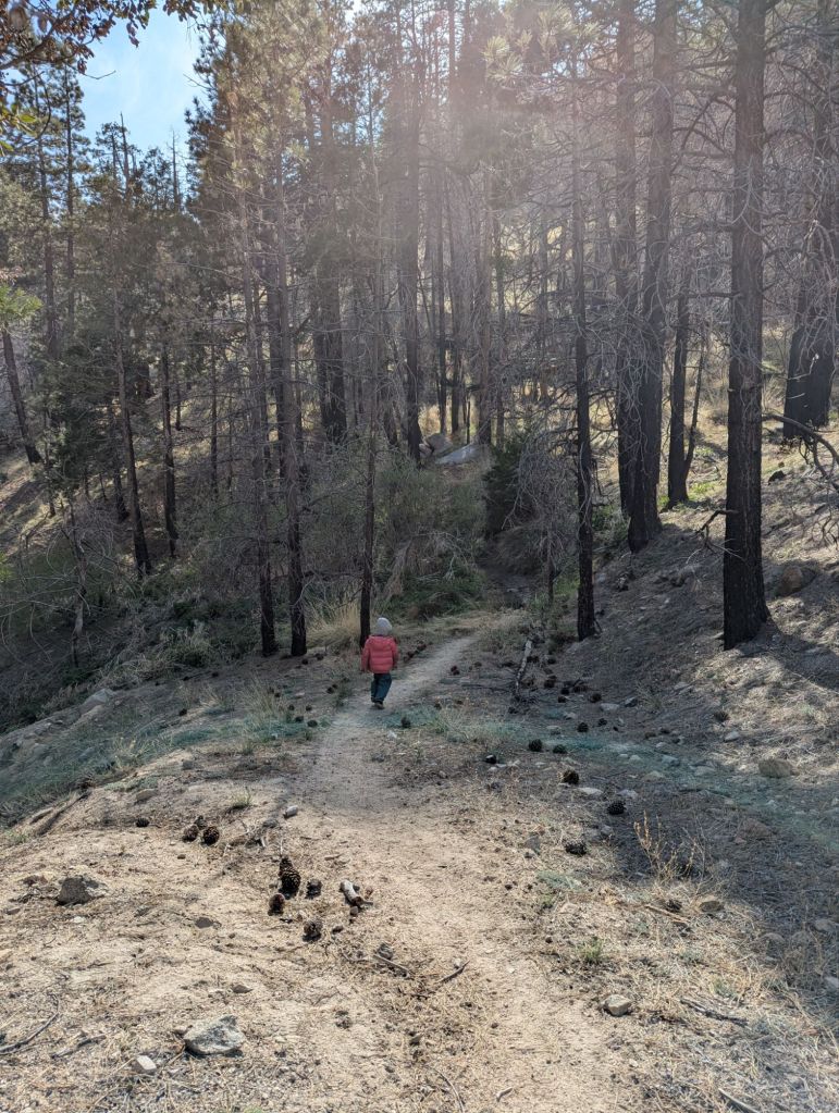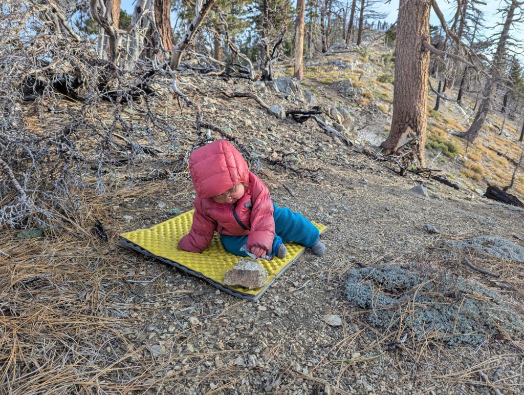 Then we got to an established campsite and had lunch and used toilets. He played. Then we hiked on the trail there to reconnect to the PCT. Again he crushed it.