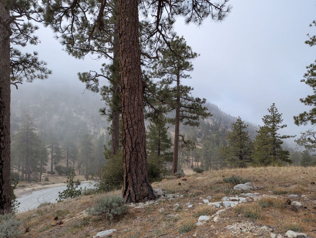 The sky started getting dark and there was some rain there. We had lunch at Three Points under the bathroom roof overhang. We got dressed in rain gear and I’m glad we did. It didn’t really rain hard but it was foggy and damp most of the day from then on. Not a lot of photos of the fog – I tend to keep my phone in my rain jacket pocket.