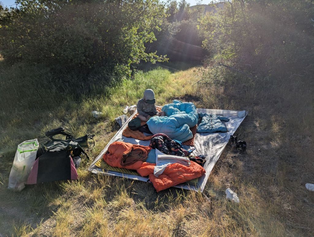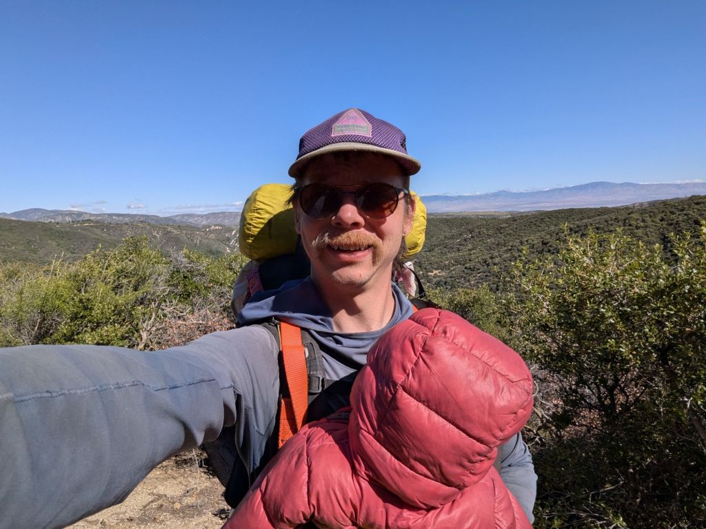 We ended up cowboy camping near a dirt road, just in from the trail. We saw a Jerusalem Cricket. Which confused me. It’s so weird! I had to look this up later. We chose to camp further away from where this little guy lives because we had no idea what it was and didn’t want to cowboy next to it.