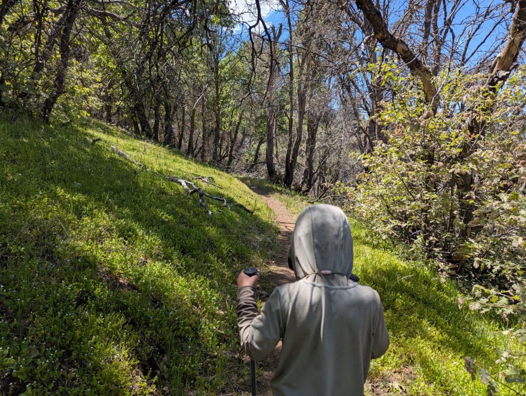 We hiked through poodle dog all morning. It was hot, and part of trail is through burn so it’s dusty, poodle-y and hot.
