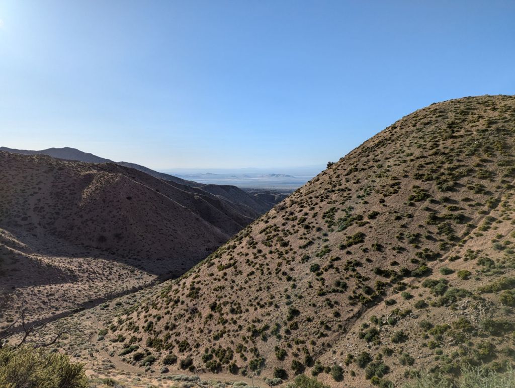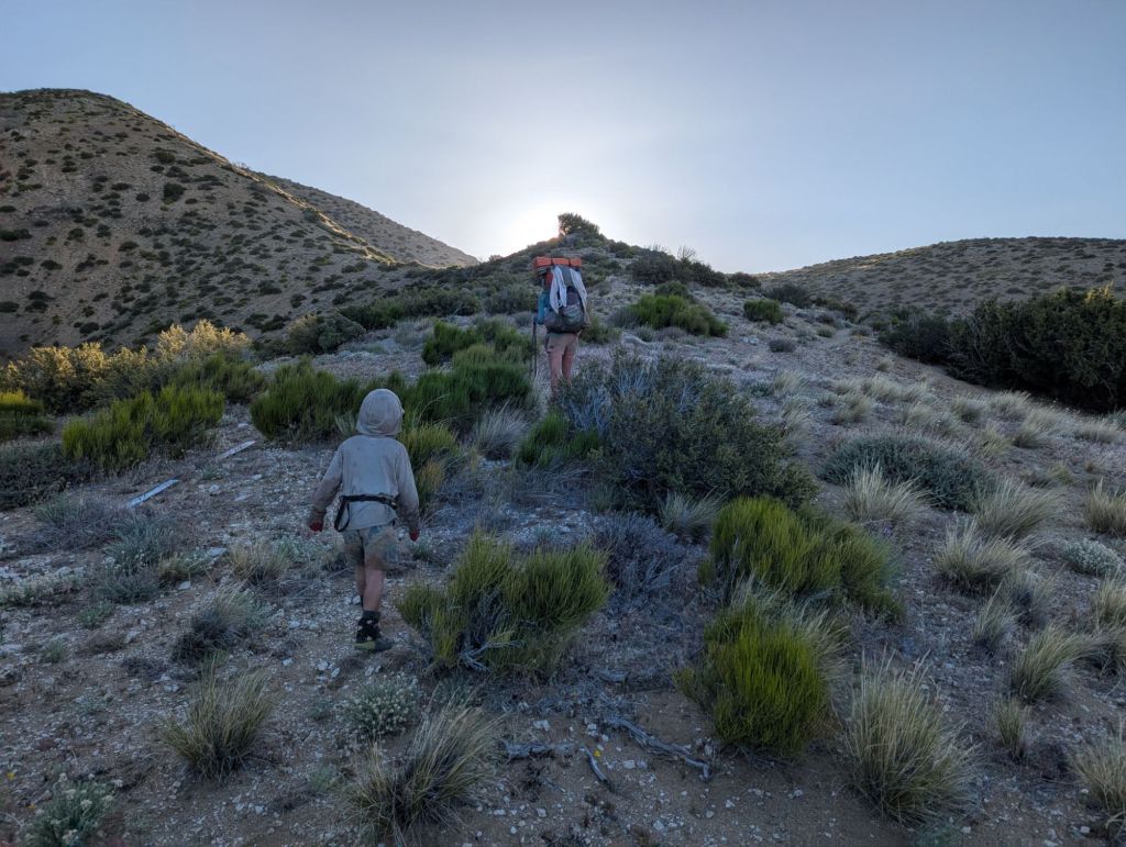 We stopped at a water cache for lunch. Chairs. Cold water. A place for secret to play. A broken umbrella and hiker box. Was nice. We talked to Captain Kirk again and just hung out.