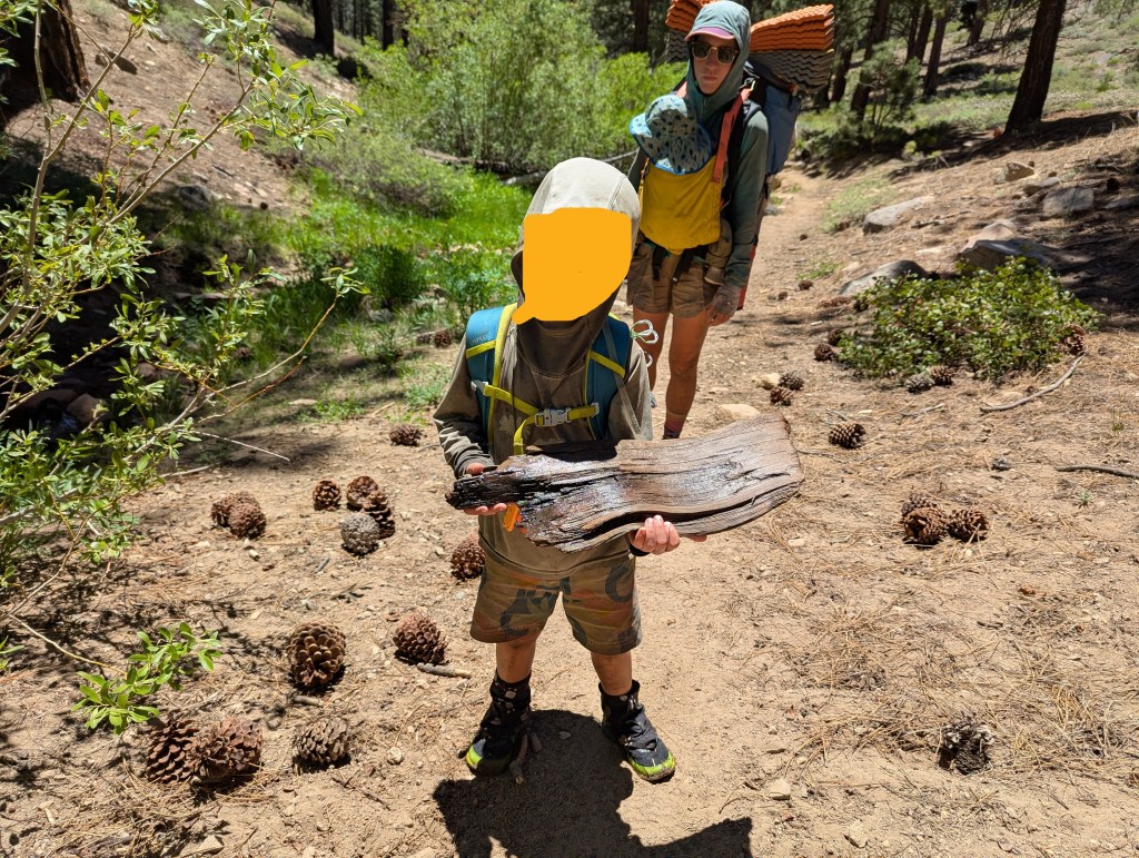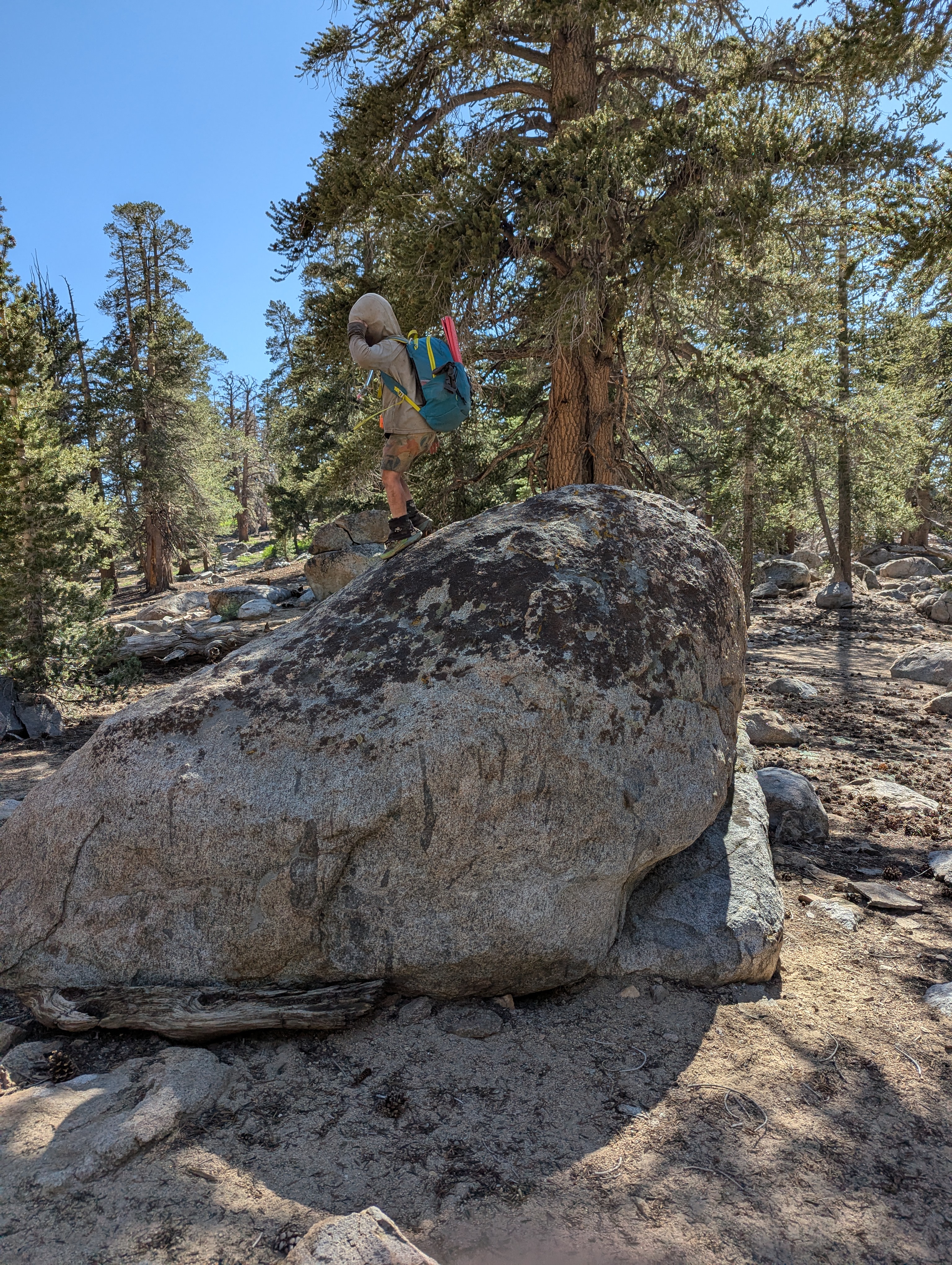 Today wasn’t a huge day. We hiked 8.5-ish miles. We camped at a beautiful spot. Secret played. Lil Flier crawled and stood using boulders. Camp was at our highest elevation yet at this trip: 10,374 feet.