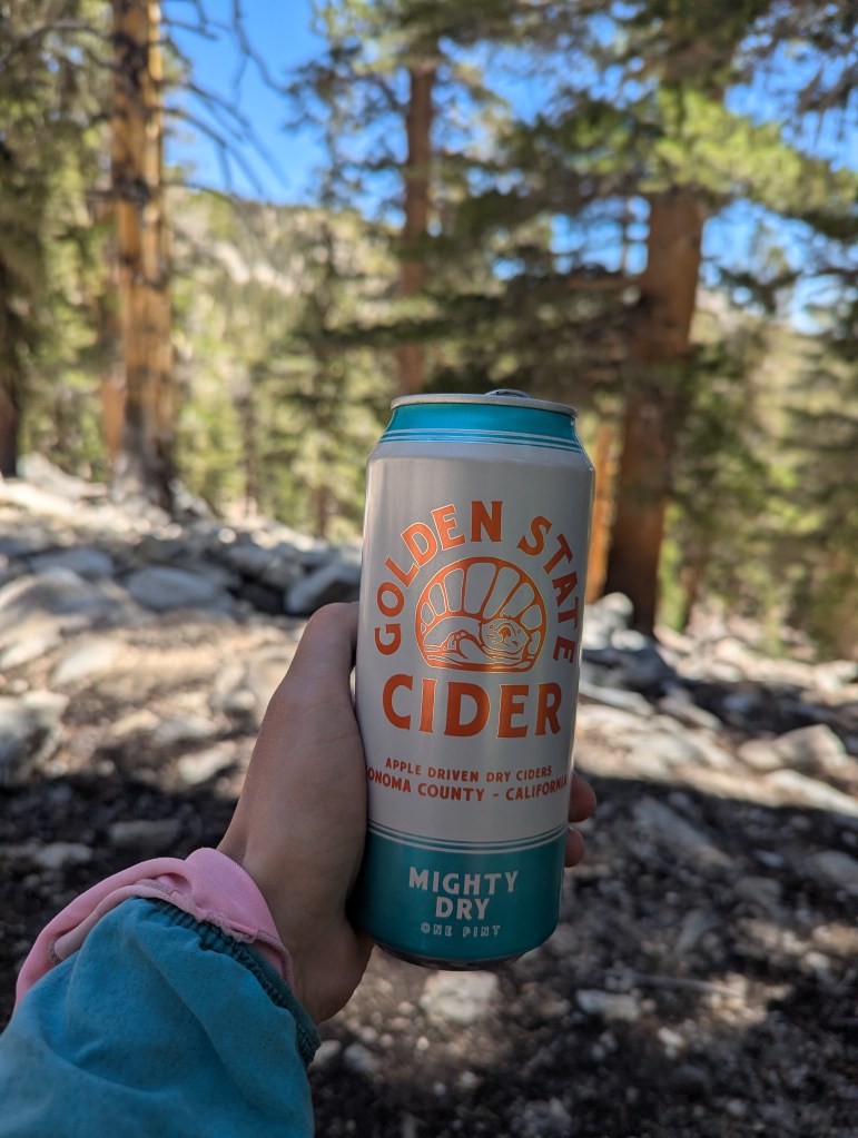 We had some leftover cider from town. Natasha and I shared a tall can while having lunch by a creek. Natasha finished it while walking.