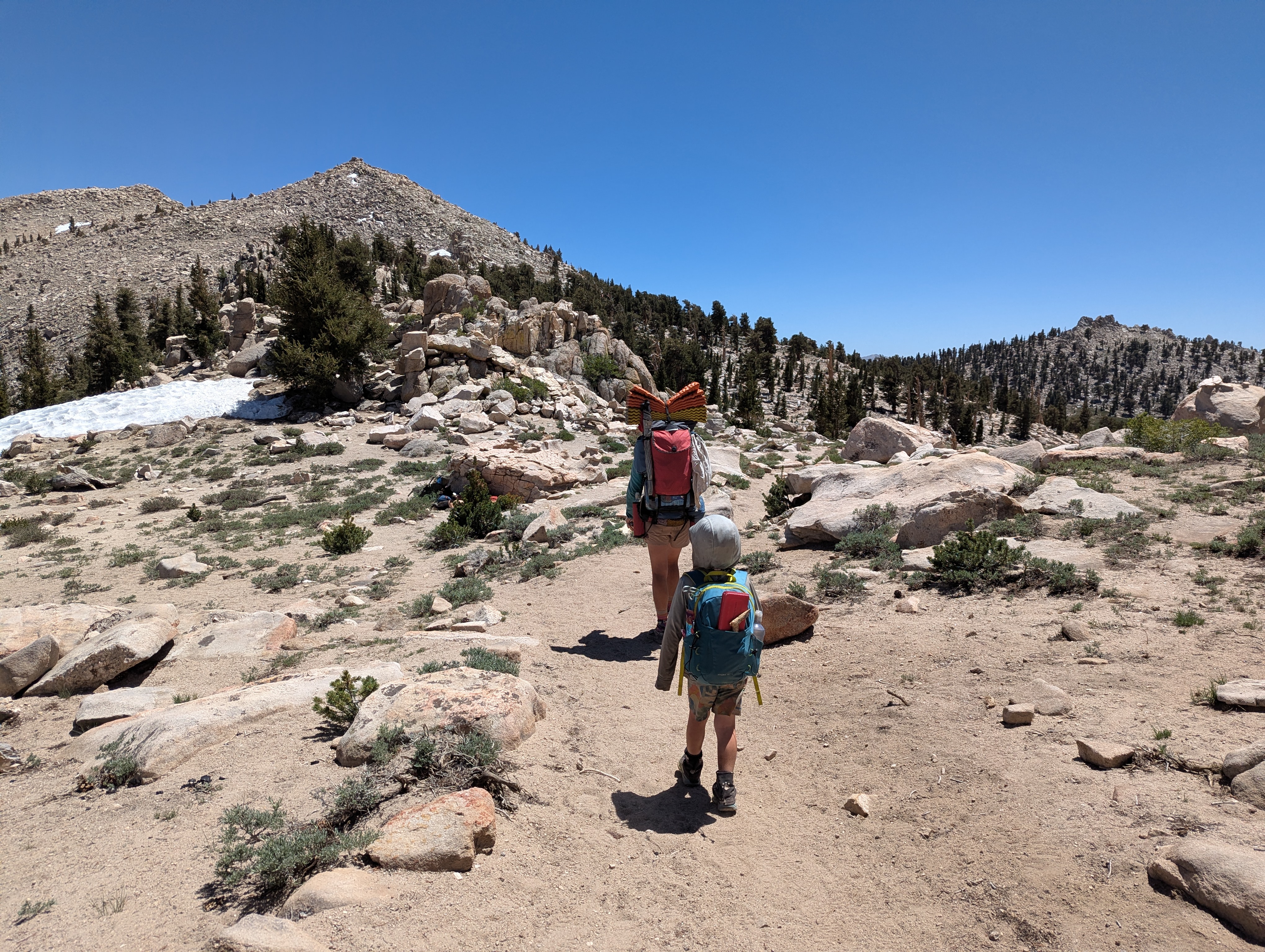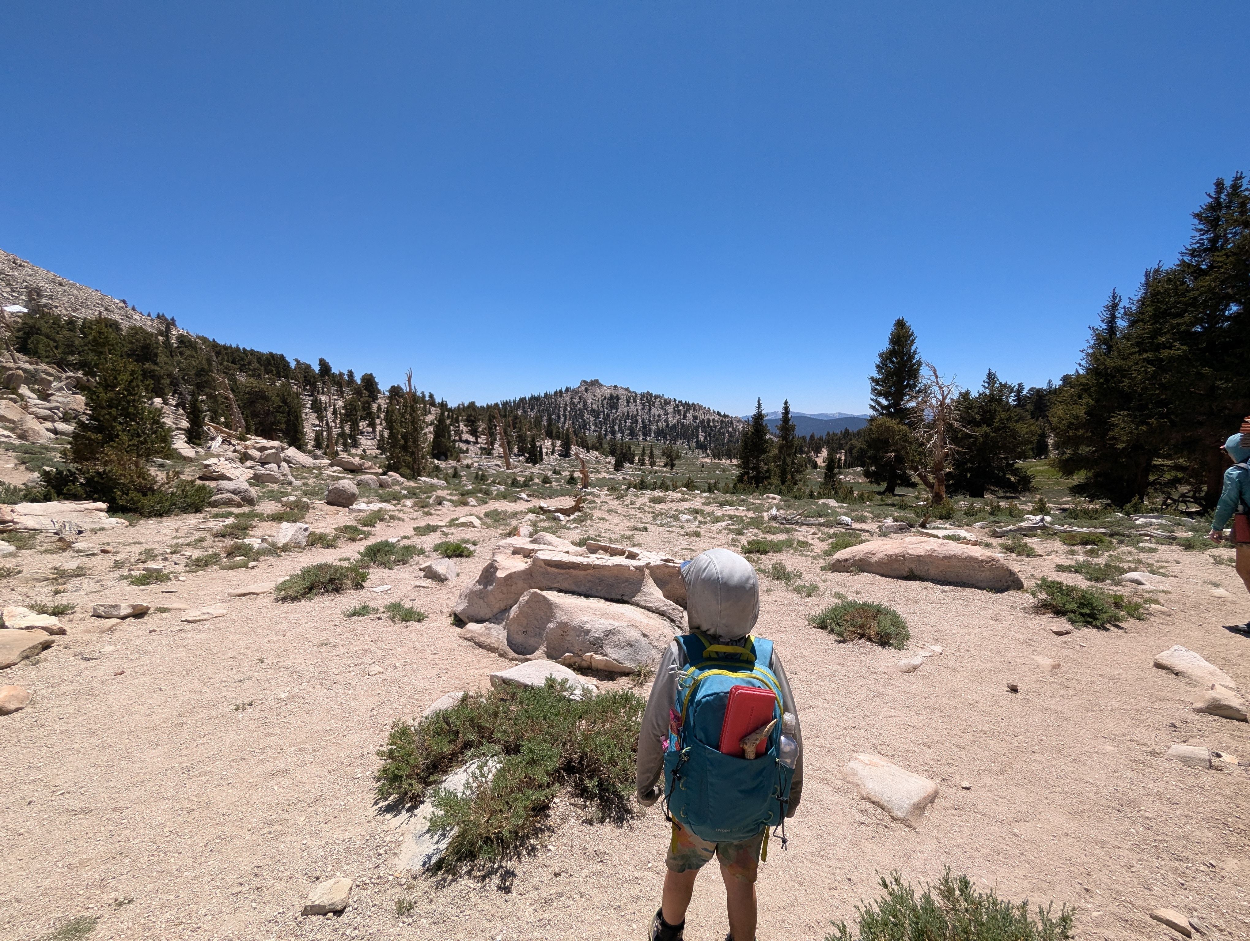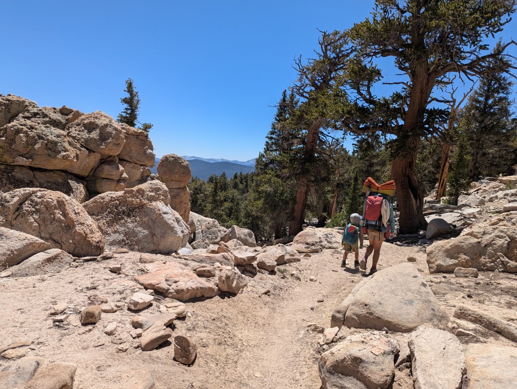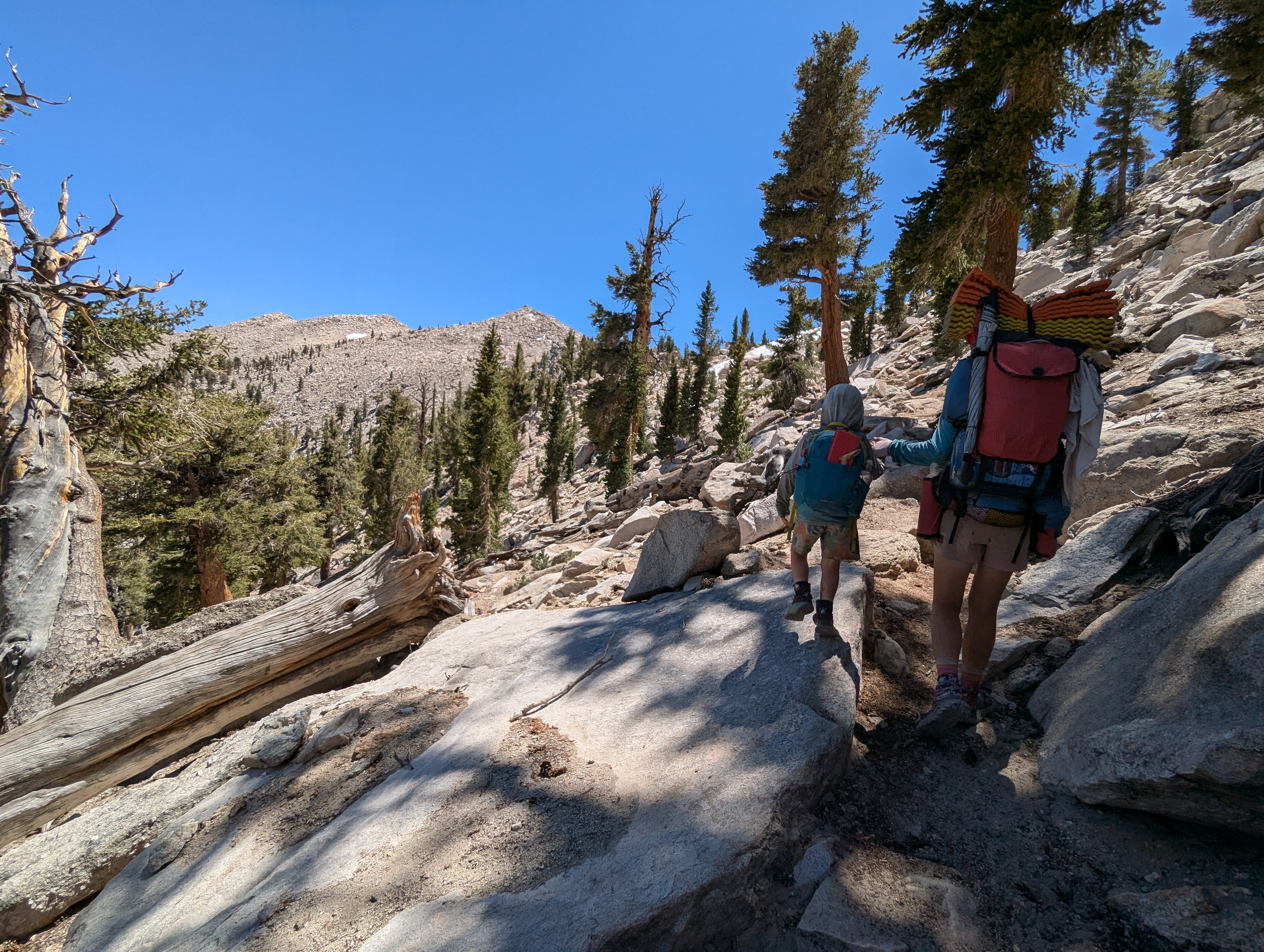 We eventually found a nice spot a little close to the trail before the next lake. We figured we’d camp there instead of the site listed on Farout to avoid any crowds. It’s pretty here. Lots of climbing opportunities for the kids. The tent site I picked was very flat. It’s not near water so we won’t have to deal with the condensation.