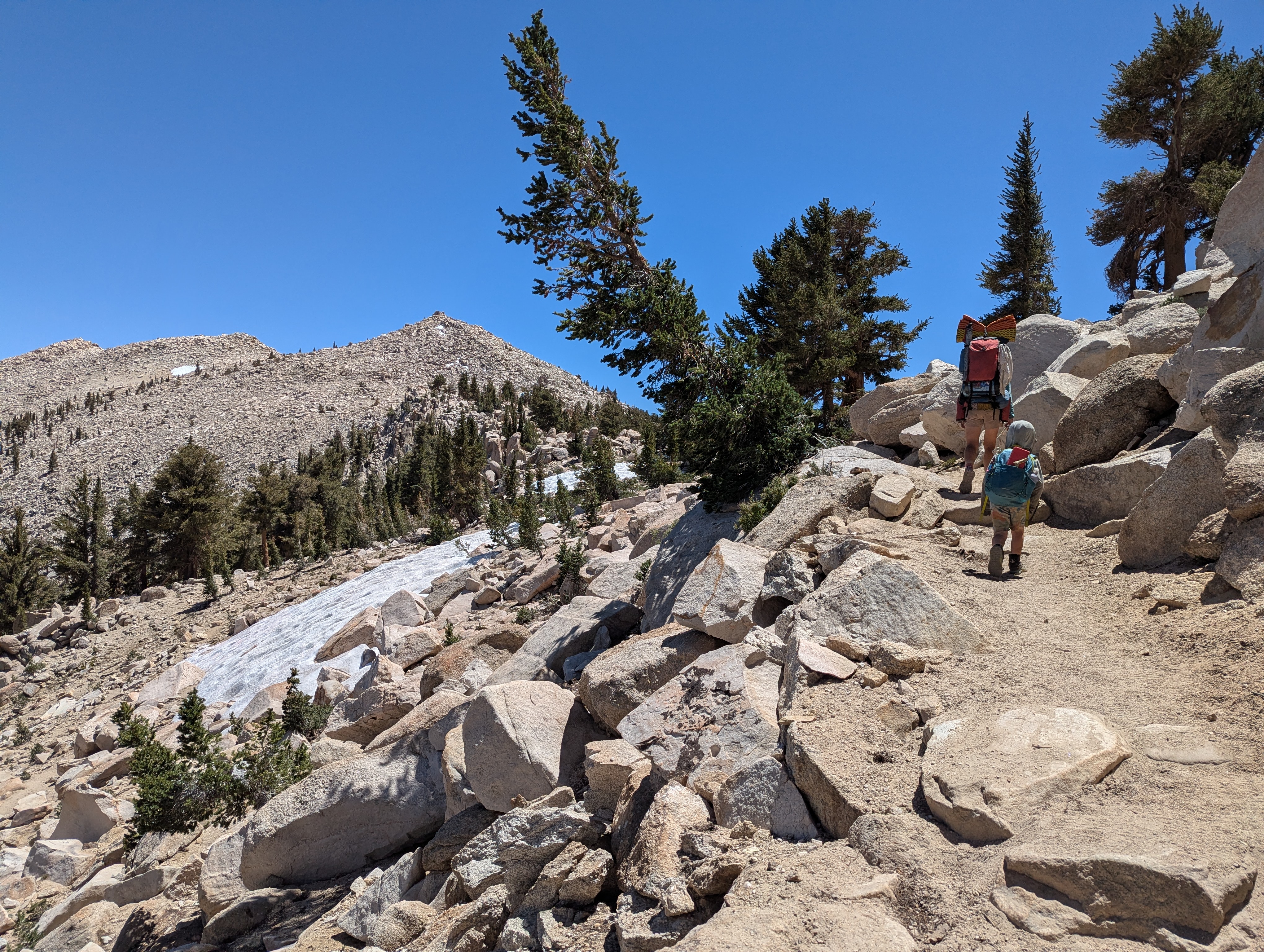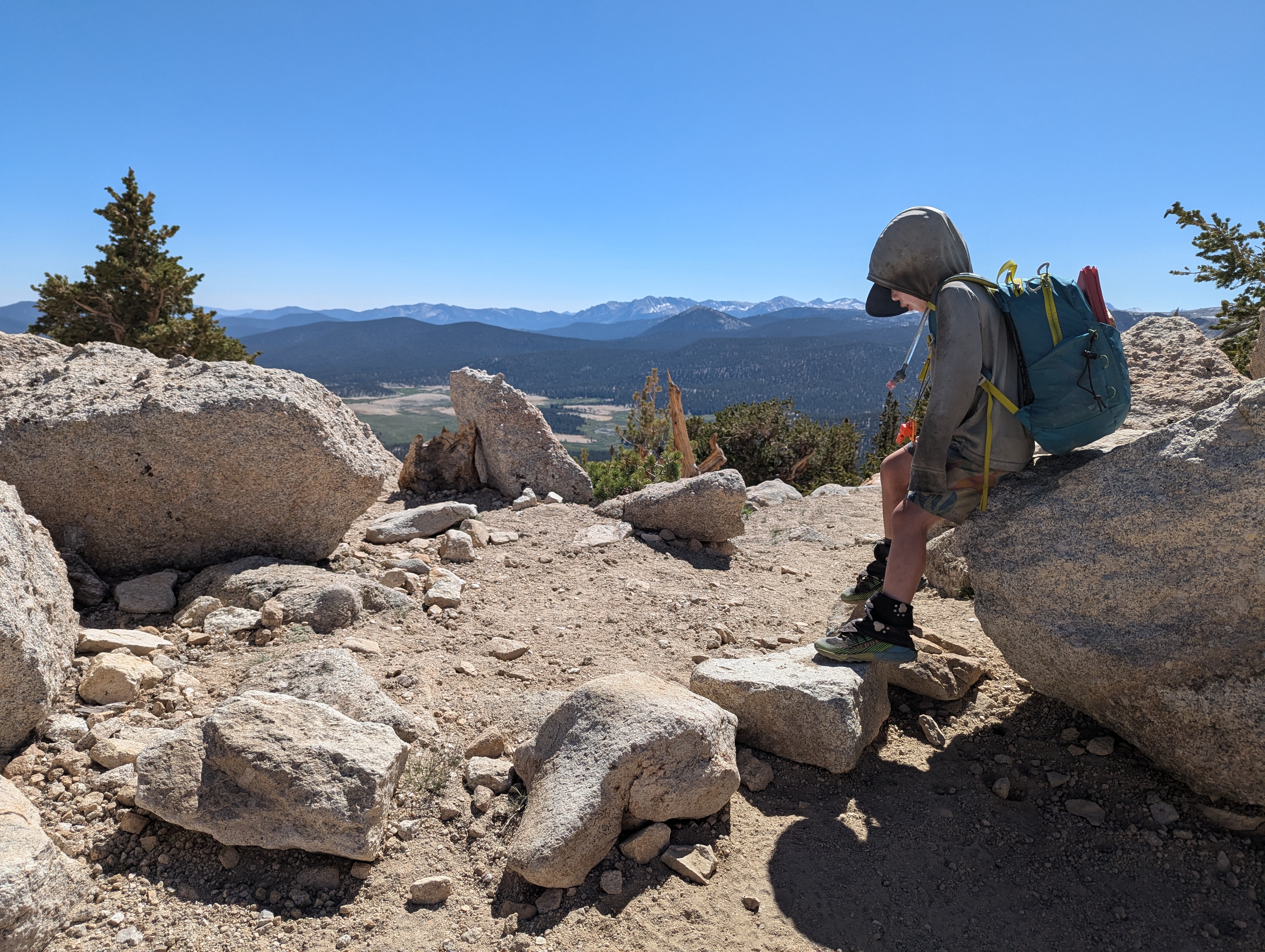 At the junction we reached the kids highest elevation yet. 11132 feet. It was so pretty. Secret saw snow and got super excited.