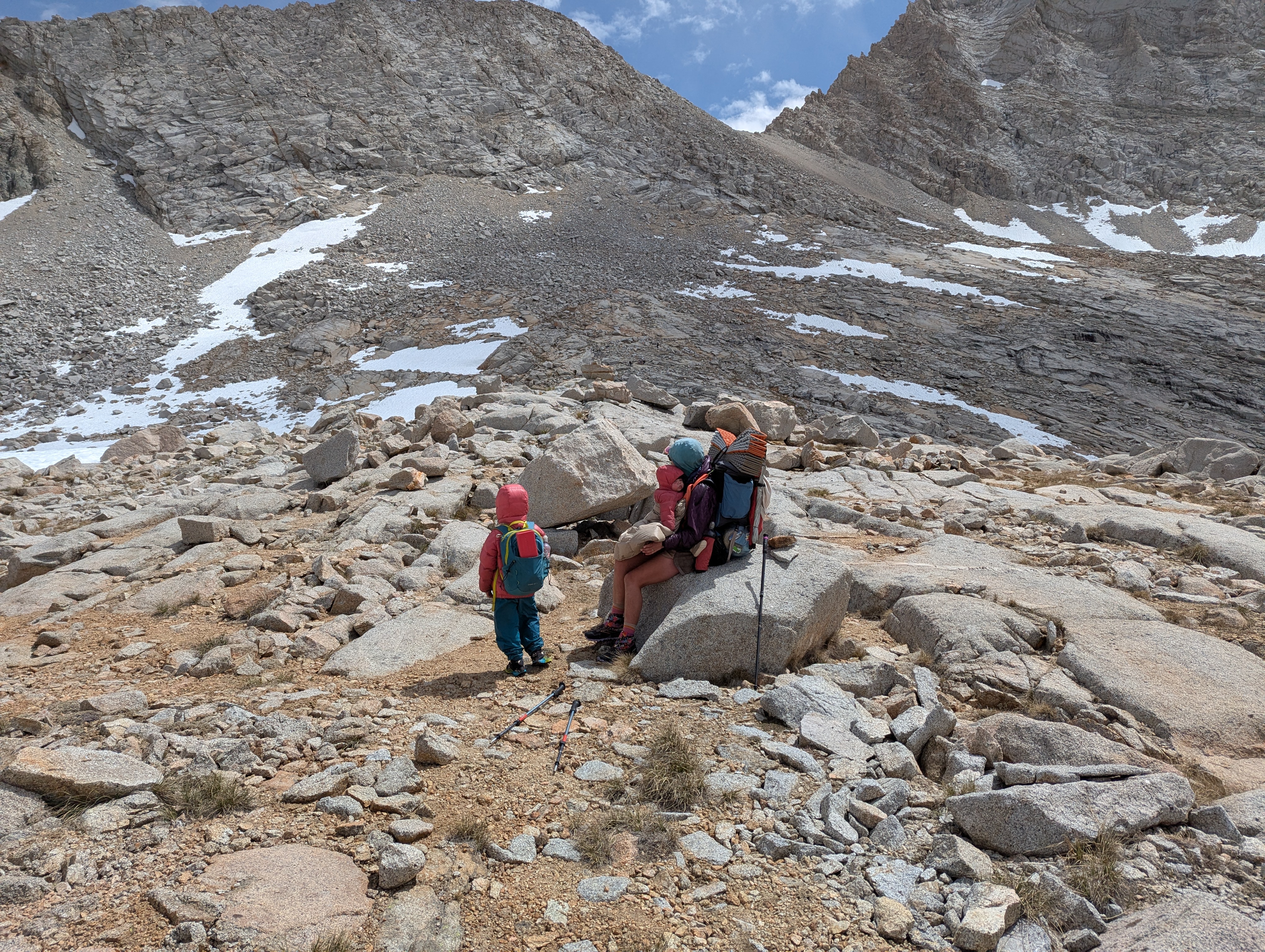 We stopped for a break down at the base by the other family. Kids got a break. We got to eat. We felt less anxious about weather.