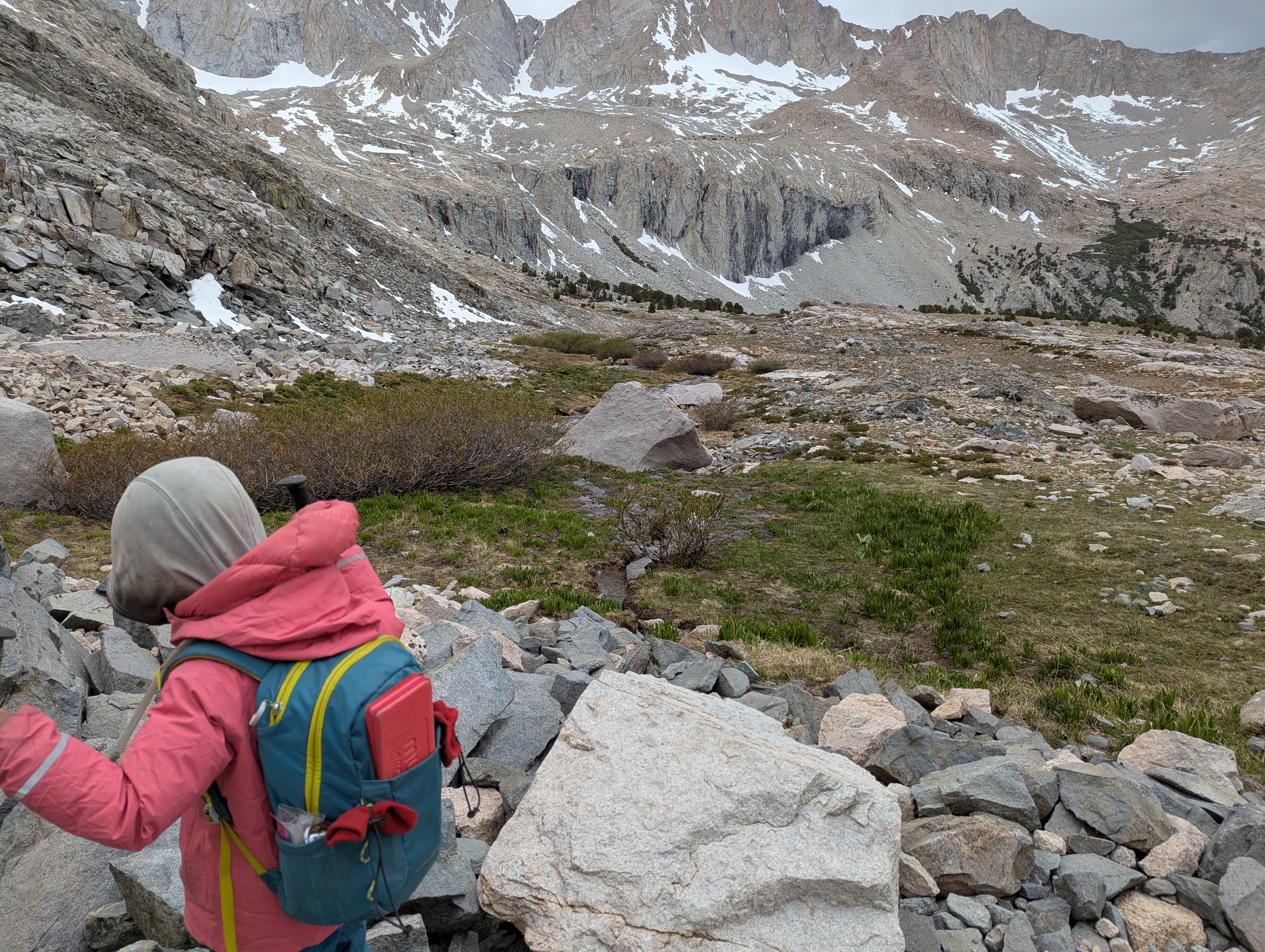The approach to Forrester Pass was pretty awesome other than Secret being hungry. It improved when he ate some food. Then it was so cool.