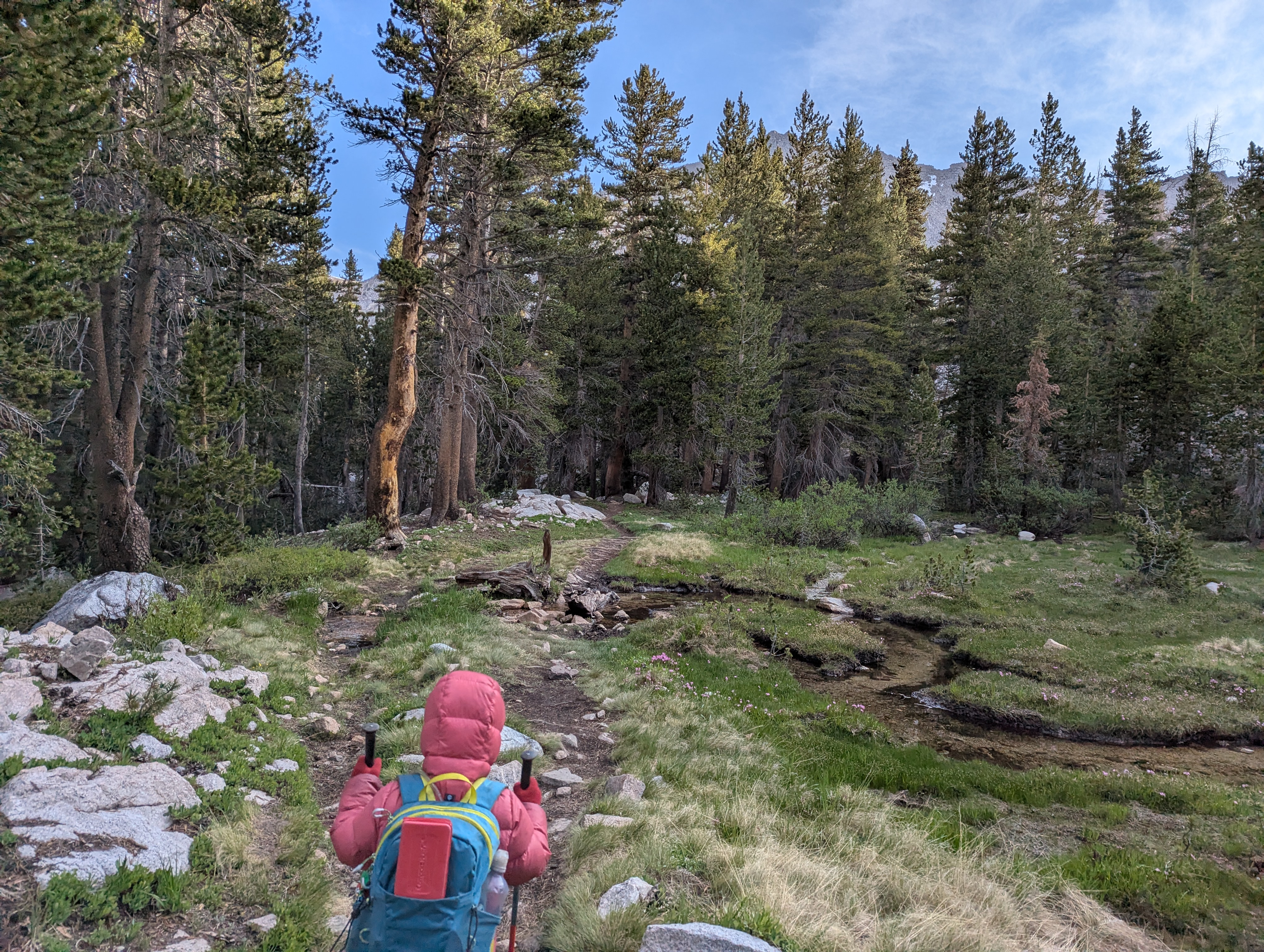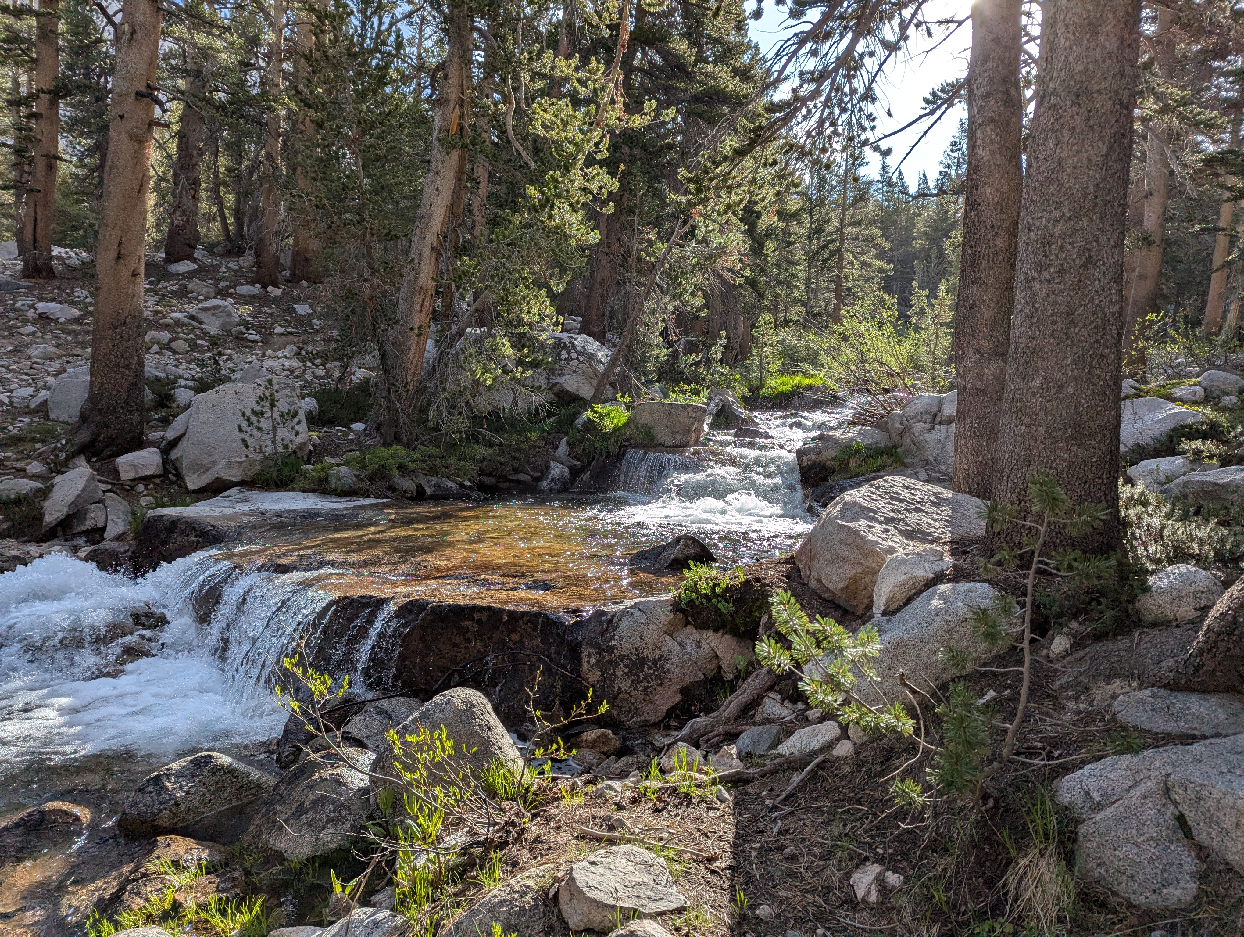 Today we initially hoped to get to Independence but we realised last night it would be like 14 miles which is a little much for Secret. Even if we did it in a day we would arrive in the evening. We would rather take another day on trail and get to Independence earlier tomorrow so our town day is not rushed at bedtime. So the plan is to camp at the Kearsarge Lake tonight off the PCT, then head the rest of the day to town tomorrow.