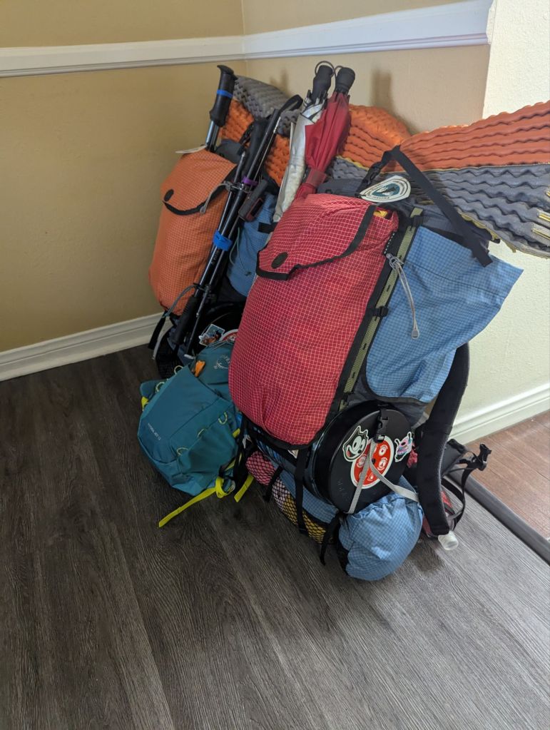 Strapping two sleeping pads to the top isn’t bad. I could lash them vertical or on the bear can as well if needed. I will try this to lower the height of the pack which will make using umbrellas easier.